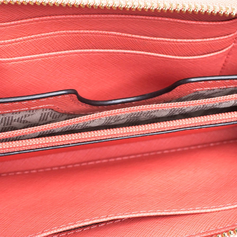 A creation of utility and minimal fashion, this wallet by Michael Kors is a worthy purchase. It is crafted from leather and detailed with the brand plaque on the front. It has a zip-around closure, multiple slots, a zip pocket and two main compartments.