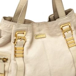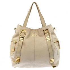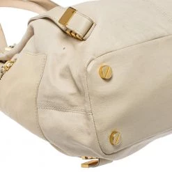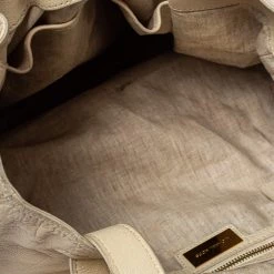 This cream shoulder bag from Versace has been designed to be a worthy style companion! Crafted from leather, the bag features exterior pockets and the brand detail on the front. It is equipped with top handles and a canvas-lined interior for you to carry your essentials in.