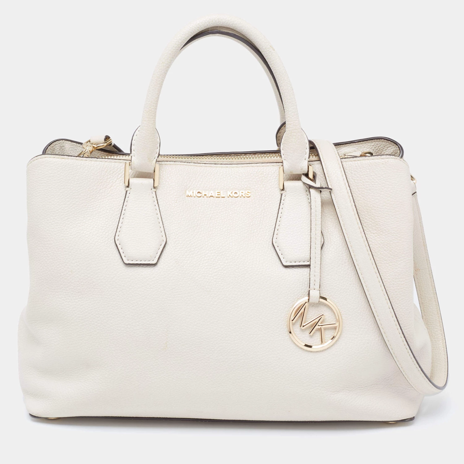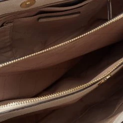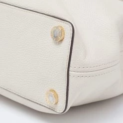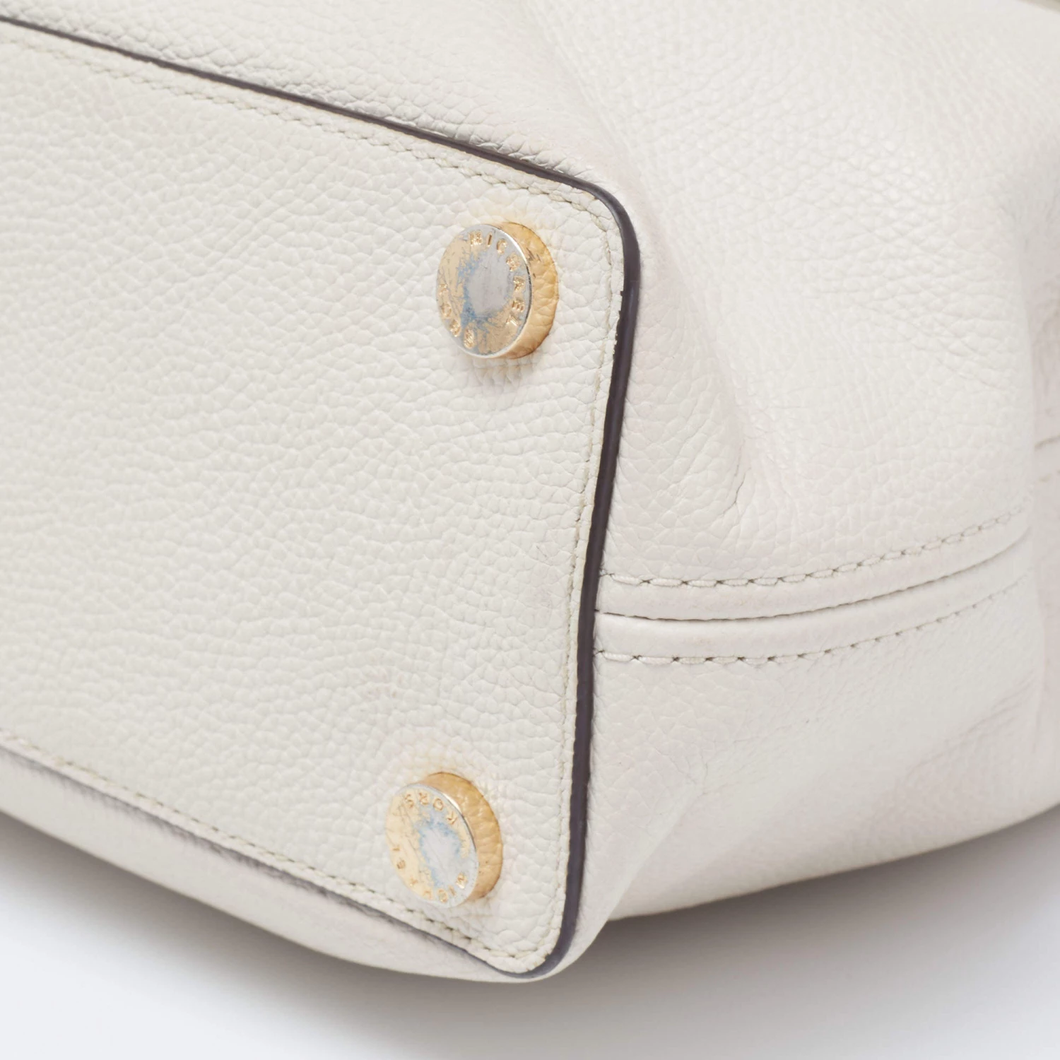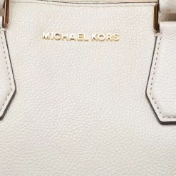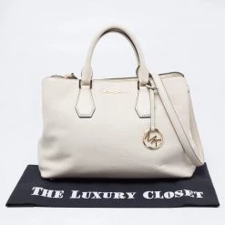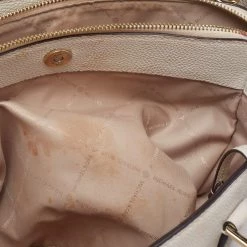 This satchel from Michael Kors is great for everyday use. It is made from cream leather, which is embellished with a logo charm on the front. It showcases dual handles and is provided with a nylon-lined interior. This satchel will make you look classy!