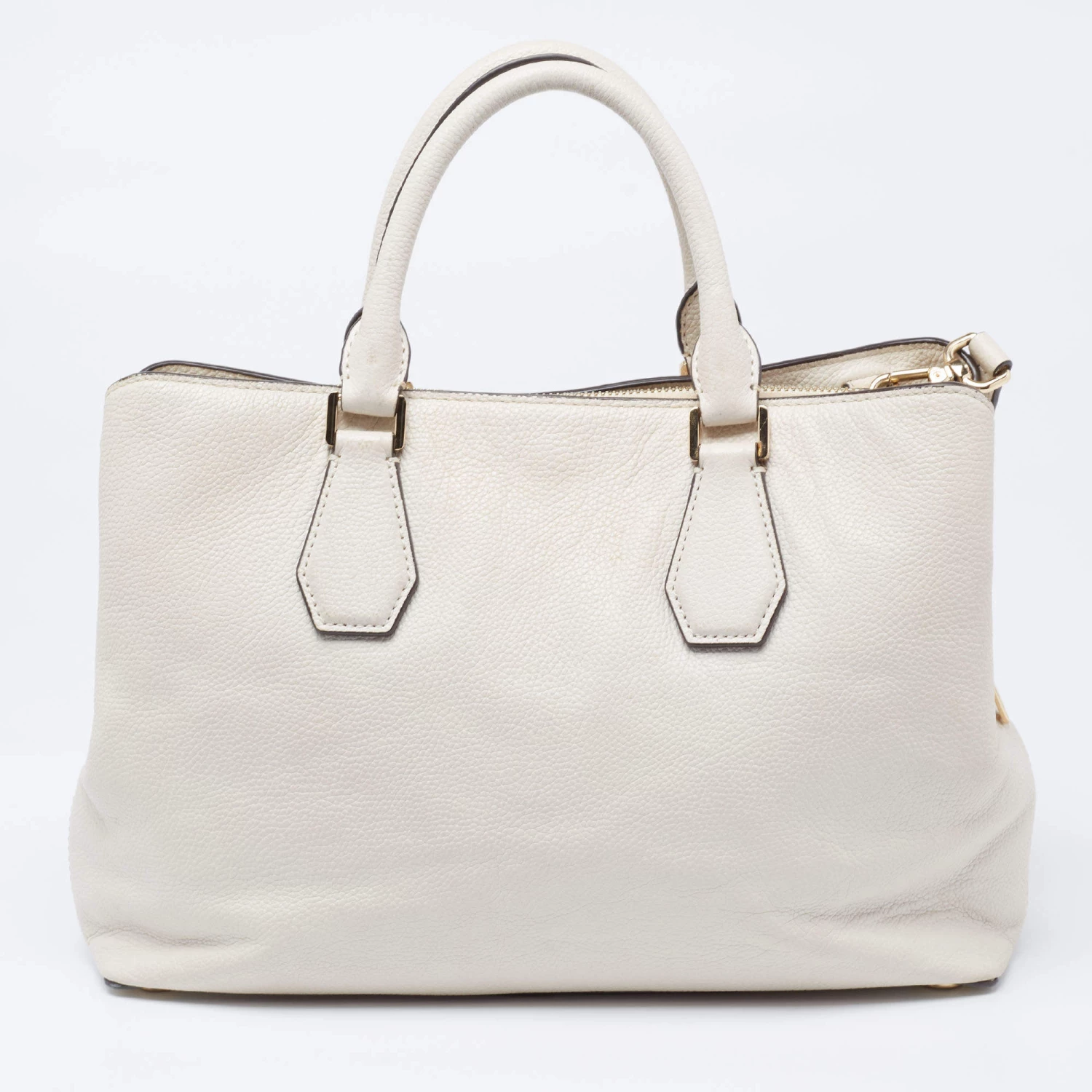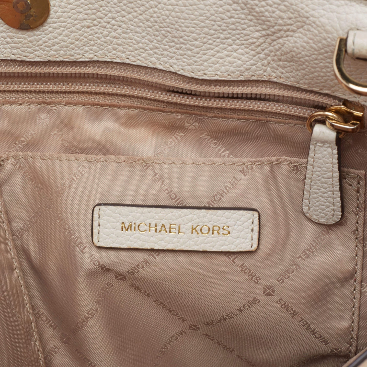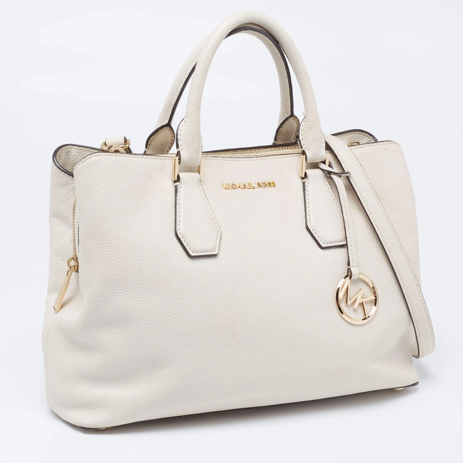 This satchel from Michael Kors is great for everyday use. It is made from cream leather, which is embellished with a logo charm on the front. It showcases dual handles and is provided with a nylon-lined interior. This satchel will make you look classy!