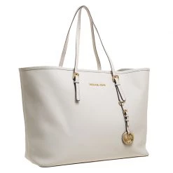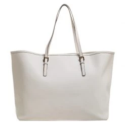 This cream Michael Kors tote is beautiful in so many ways. From its design to its structure, the leather bag exudes charm and high fashion. It flaunts two shoulder handles for you to swing and a spacious unlined interior to hold all your essentials. It is finished with gold-tone hardware.