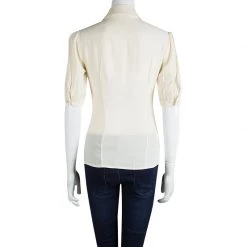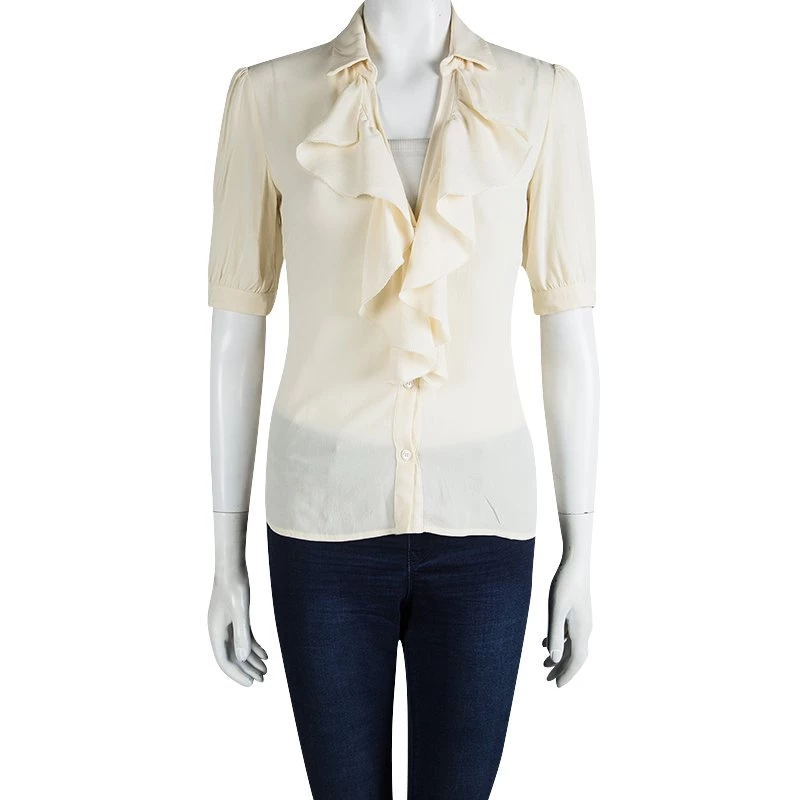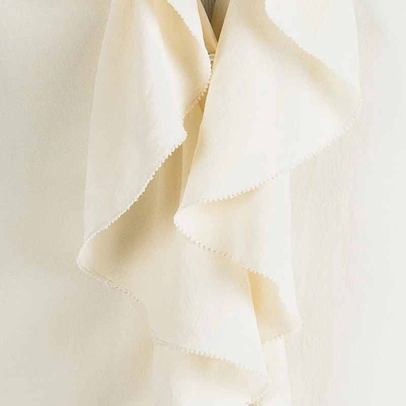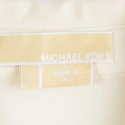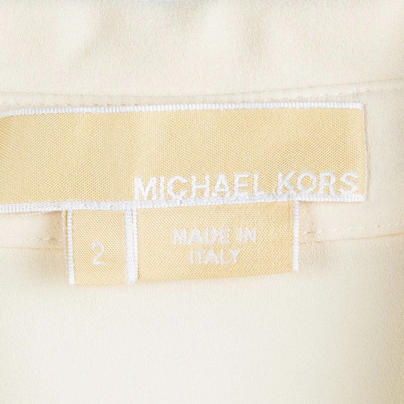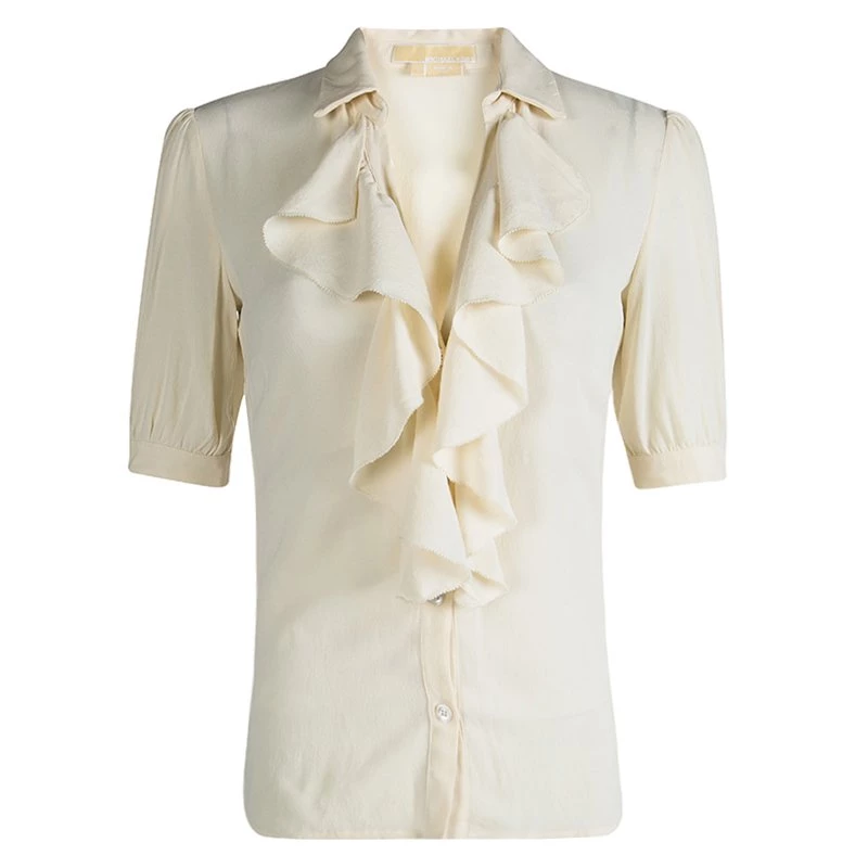 Ruffles are in trend this season! This blouse from Michael Kors is made from 100% silk and is cream in color. The blouse comes in a relaxed slim fit silhouette and ruffles in the front. It has front button fastening and a collar. Team it up with tailored pants for office.