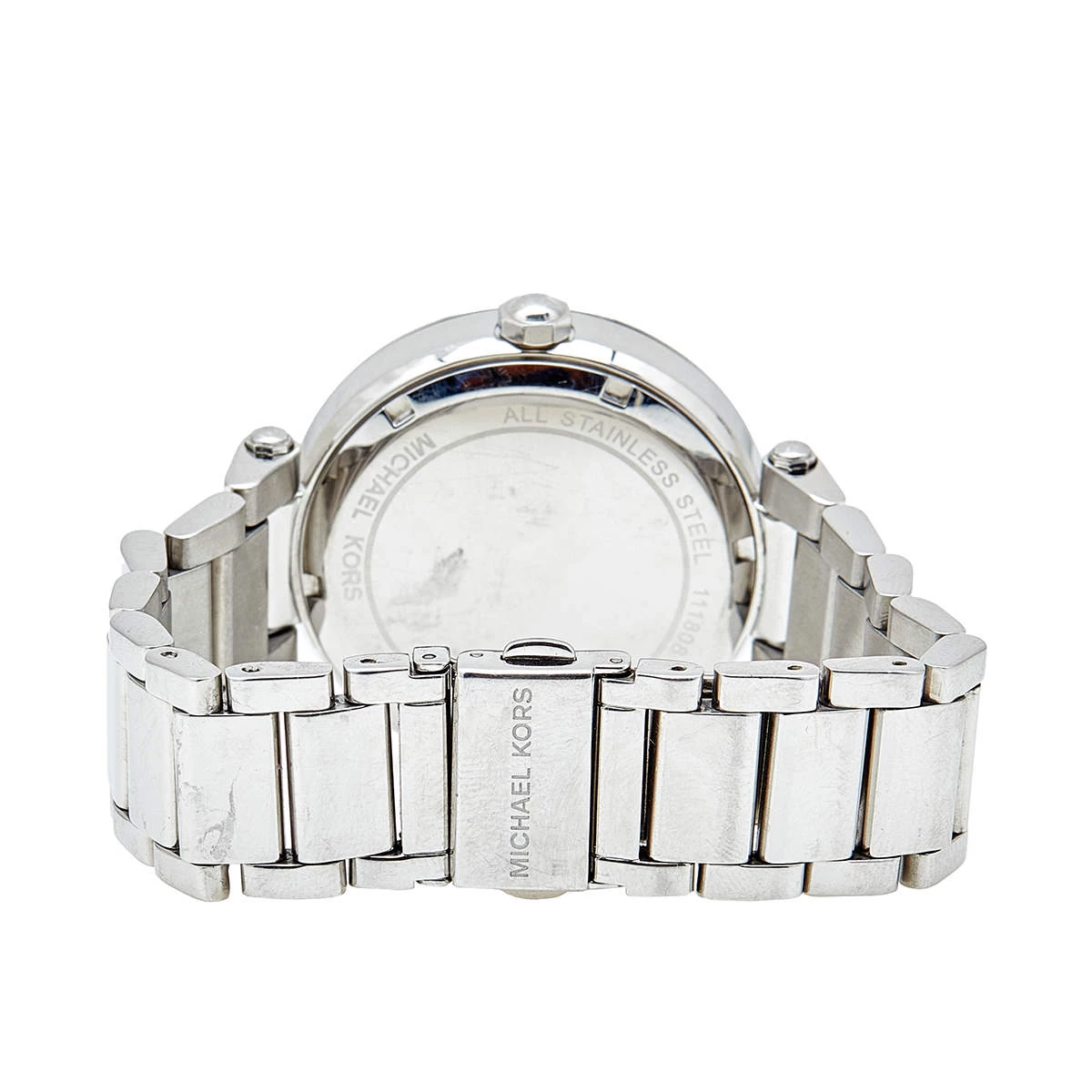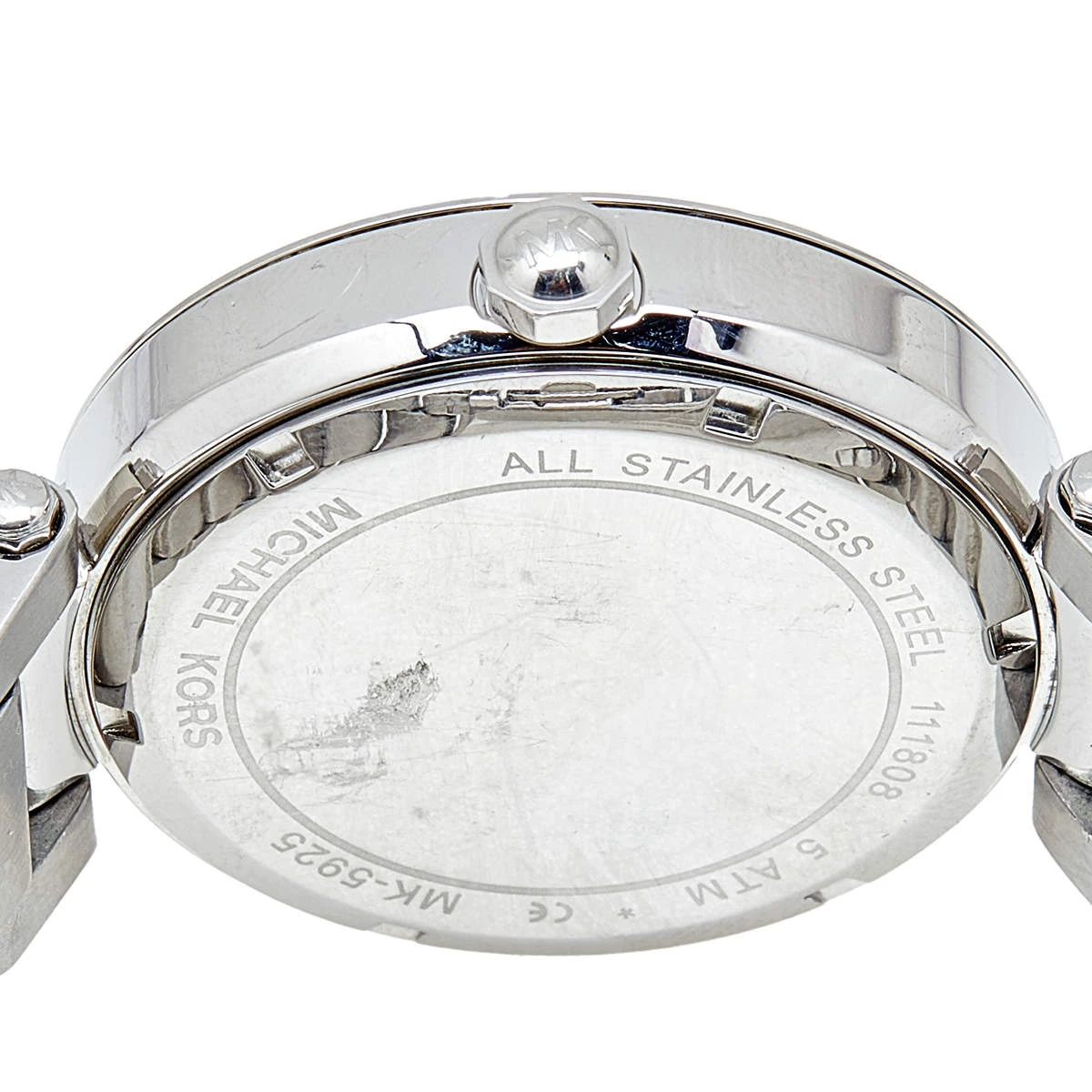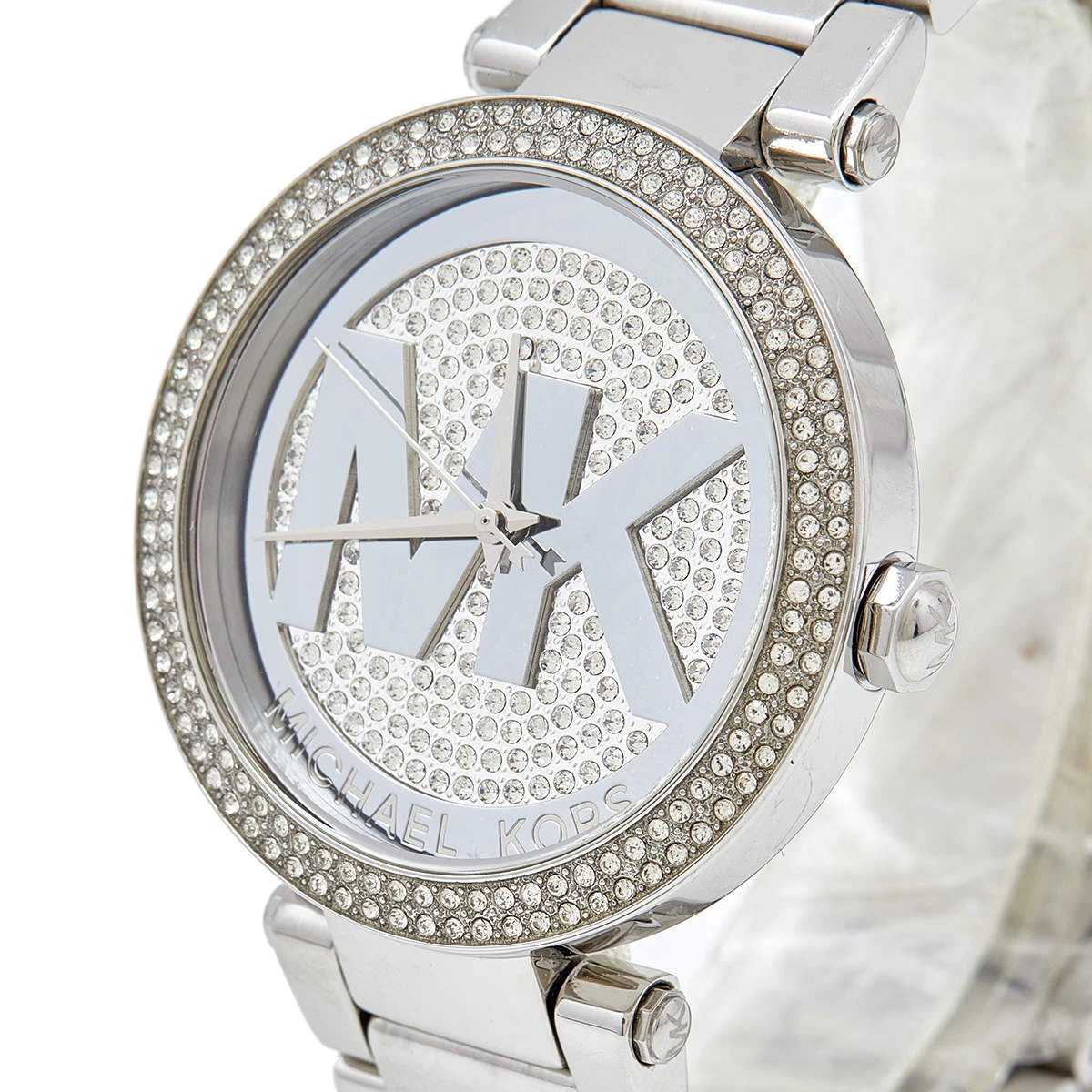 Set to shine on your wrist, this Michael Kors watch comes in a delighting gathering of the finest features. It has been wonderfully crafted from stainless steel and designed with a bezel decorated with crystals. The scratch-resistant mineral glass protects a dial, also detailed with crystals and the brand logo. Lastly, the creation is topped by a water resistance of 50 meters and held by a bracelet with a push-button release.