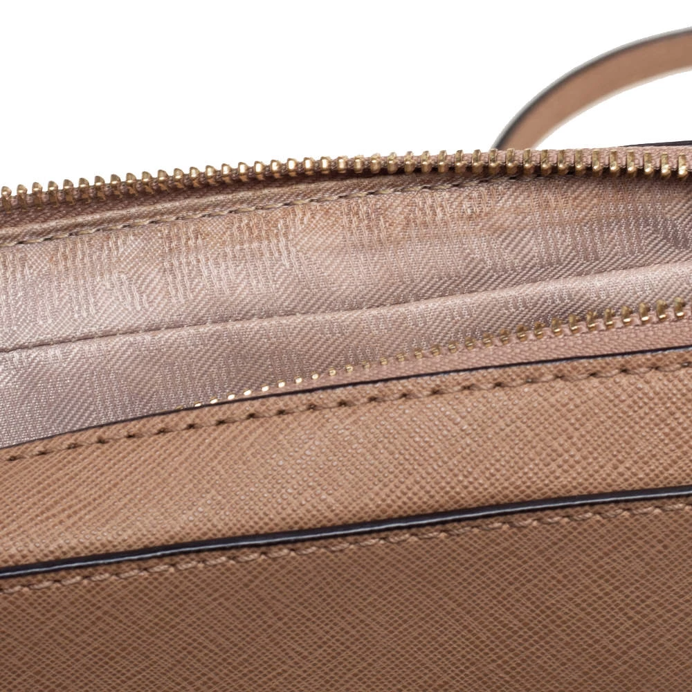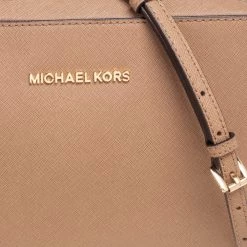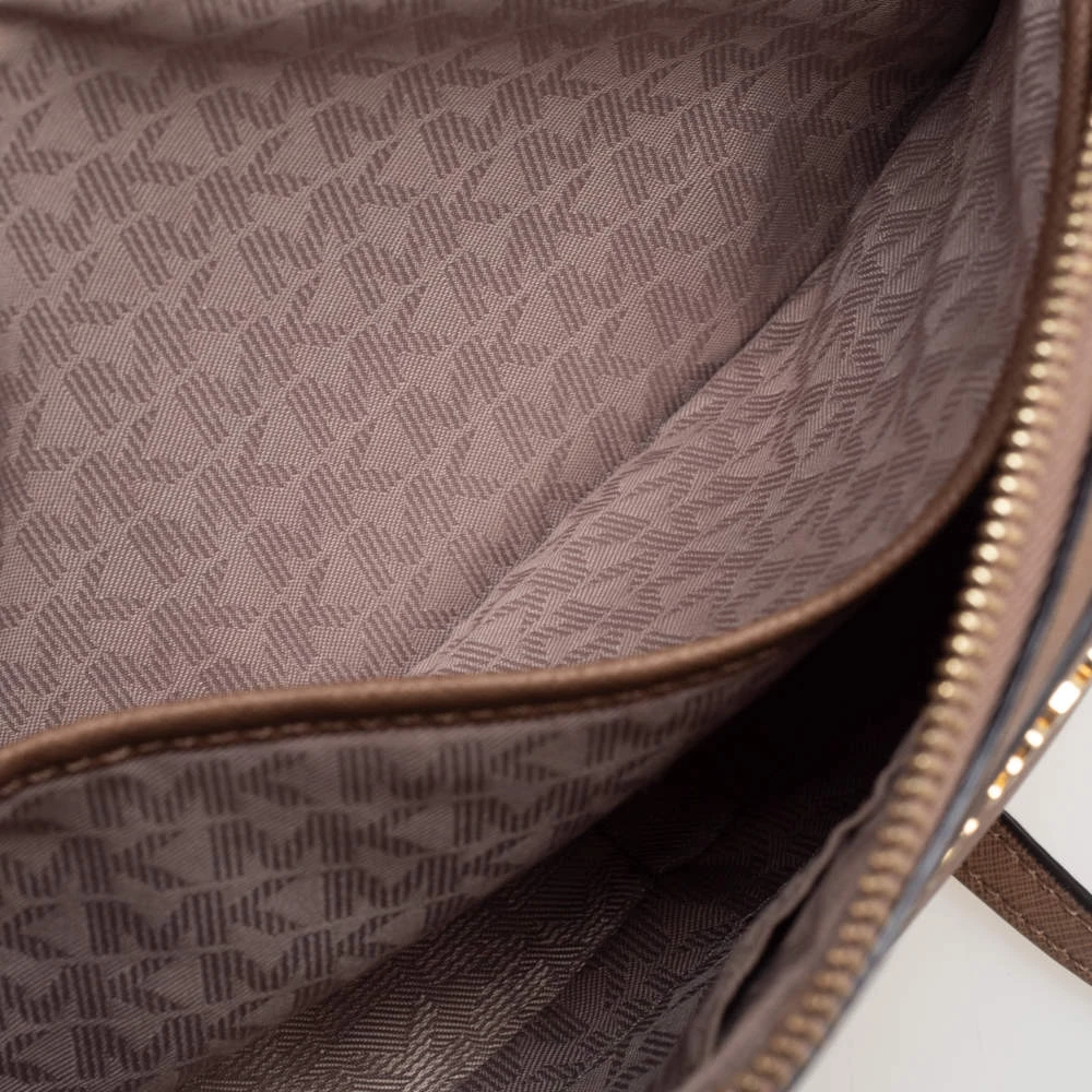 This Michael Kors bag is beautiful in so many ways. From its design to its structure, the dark beige leather bag exudes charm and high fashion. It flaunts a shoulder strap for you to swing and a spacious fabric interior to hold all your essentials