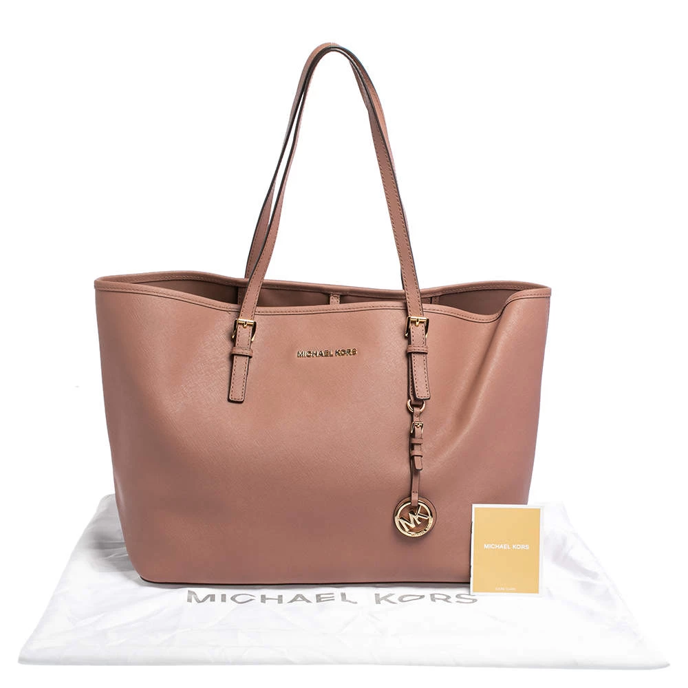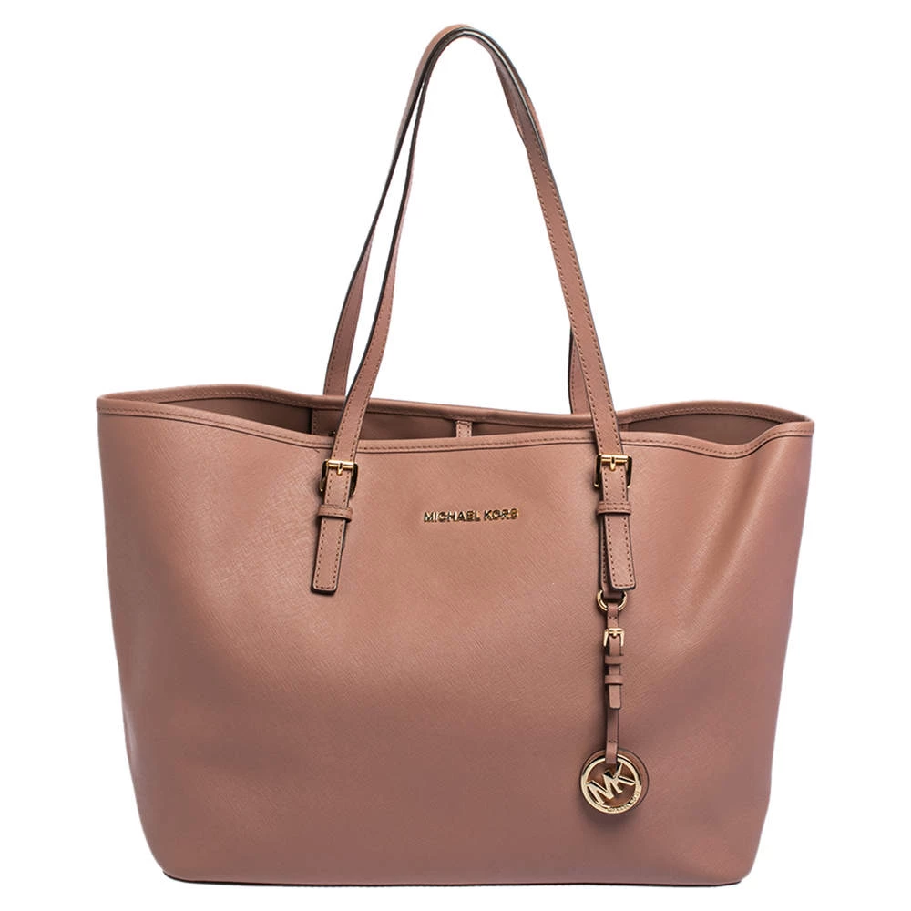 Timelessly elegant and stylish, Michael Kors collections capture the effortless, nonchalant finesse of the modern woman. Crafted from leather in a dark beige hue, this chic Jet Set tote features a spacious interior with a top zip fastening. The sleek, understated silhouette is punctuated with gold-tone hardware.