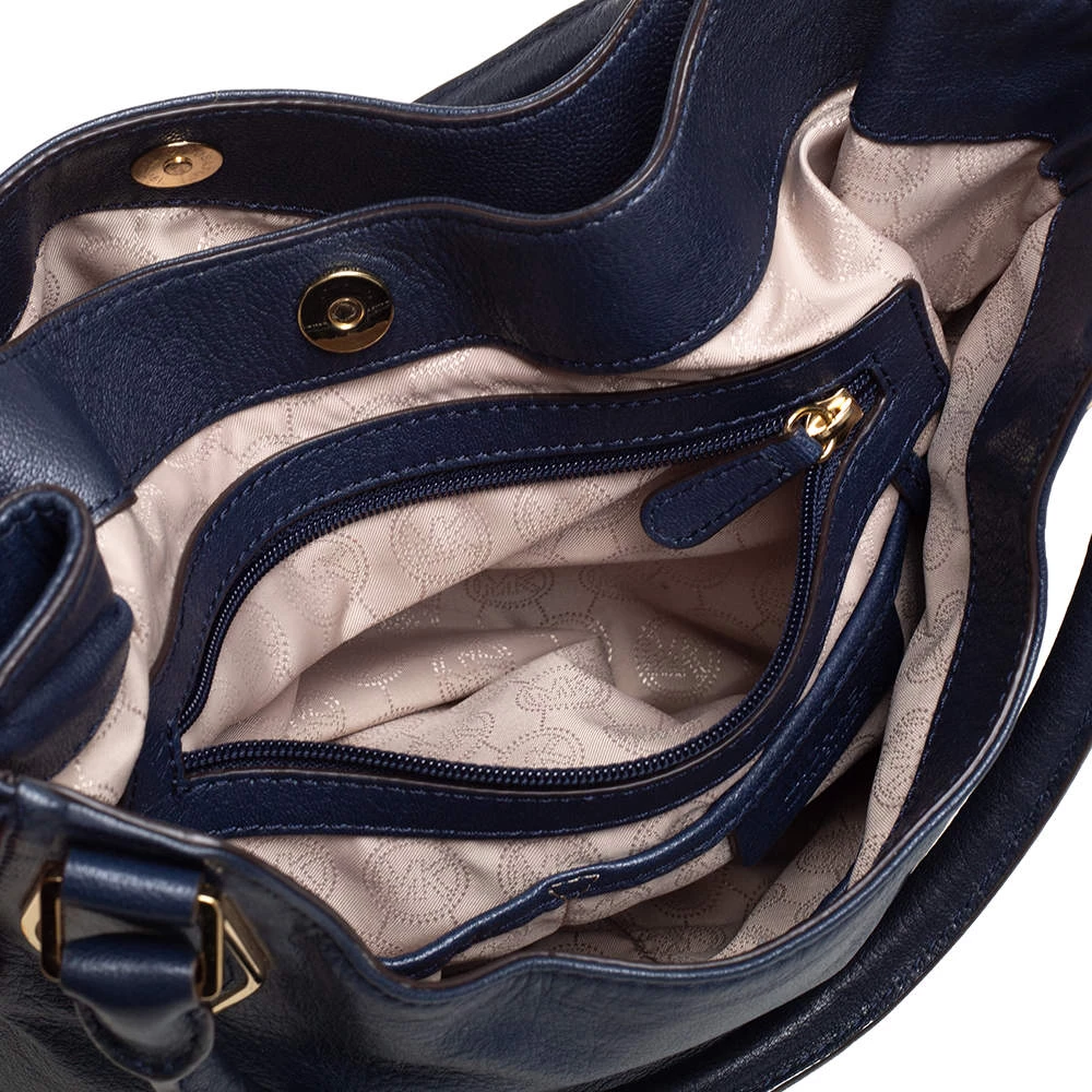 Fall in love with this vogue handbag from Michael Kors. This sleek and spacious leather bag is luxurious enough to elevate any look. The fabric lining lends support and structure to the bag. Be bold and be marvelous with this dark blue Vanessa shoulder bag.