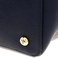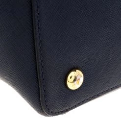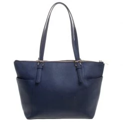 This Michael Kors tote is beautiful in so many ways. From its design to its structure, the Saffiano leather bag exudes charm and high fashion. It flaunts a dark blue hue and two shoulder handles for you to swing it. The bag is complete with a spacious fabric interior and an MK charm.