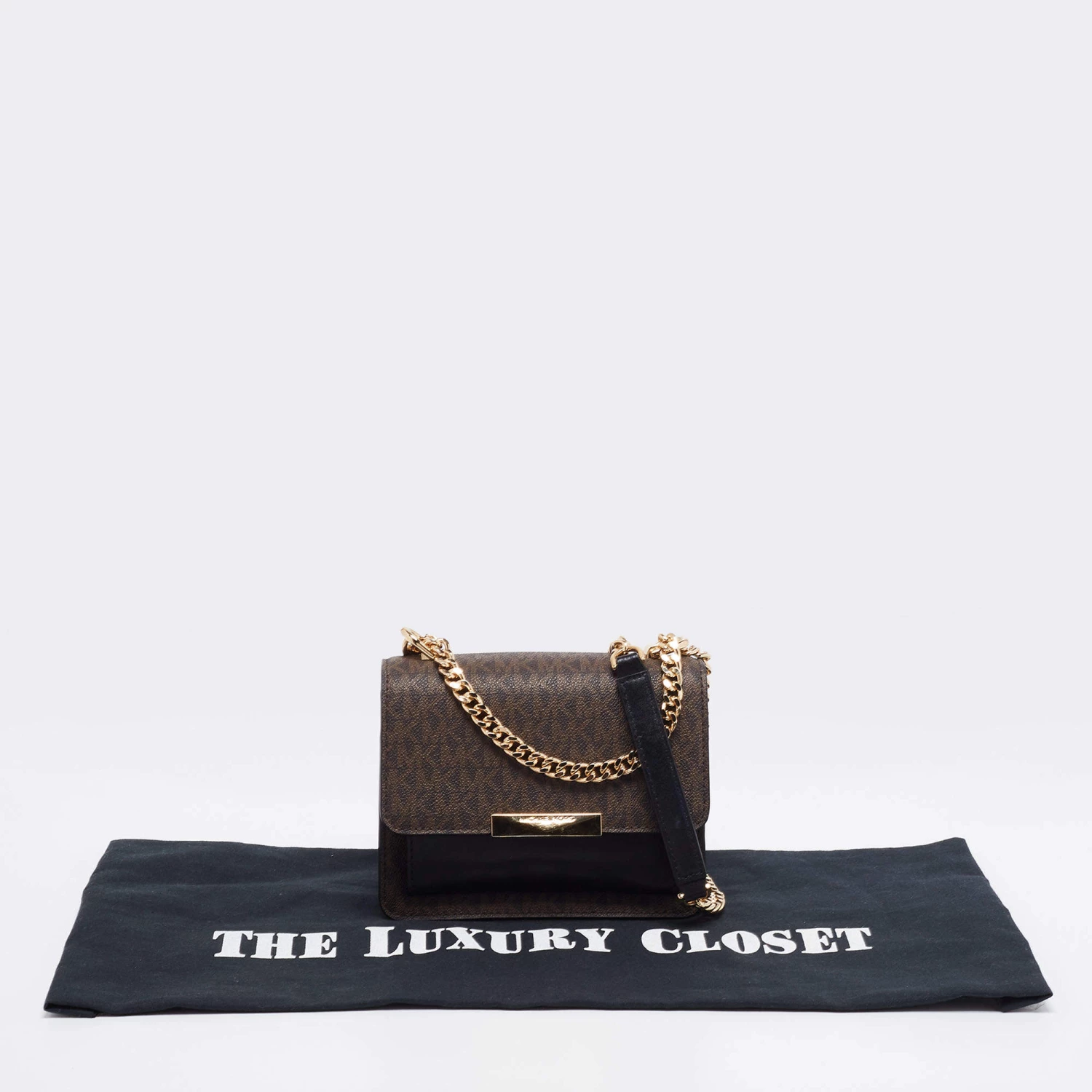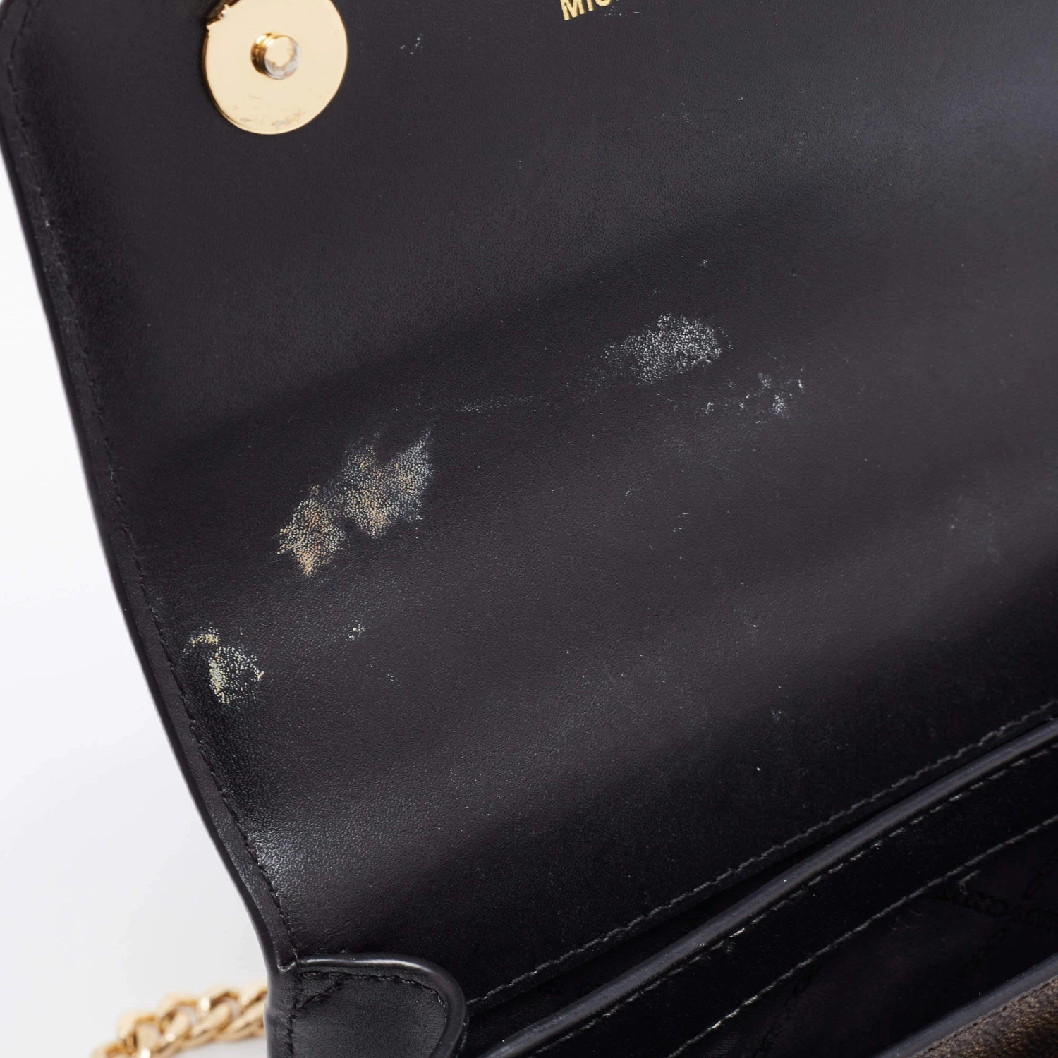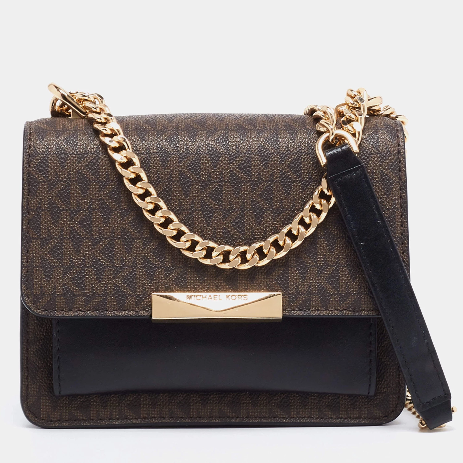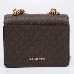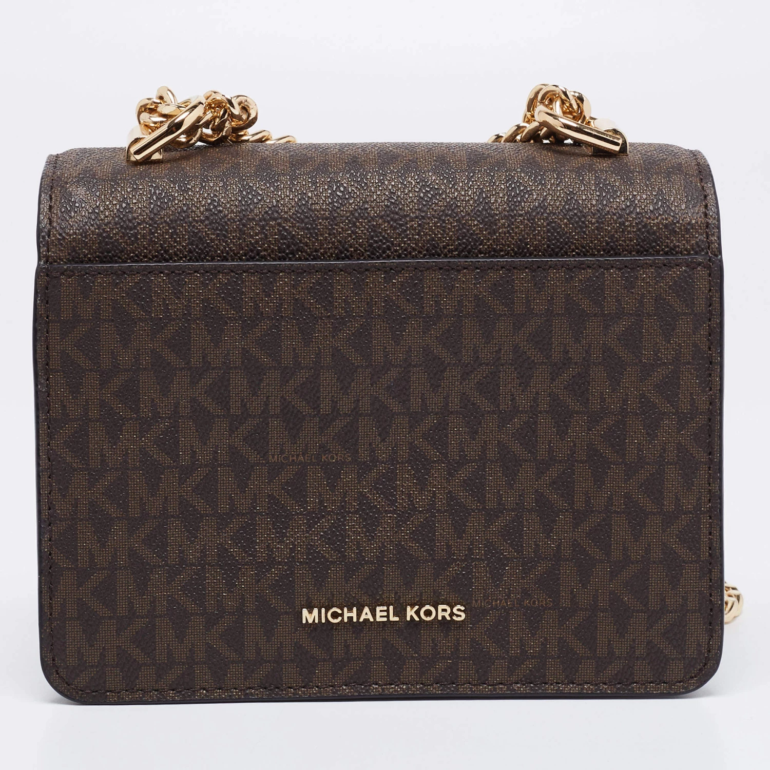 Created from the signature monogram canvas, this Michael Kors bag will add a statement appeal to your outfit. It can be carried easily with a chain-leather shoulder strap and the brand signature adorns its front flap. Lined with fabric, it will easily hold your belongings.