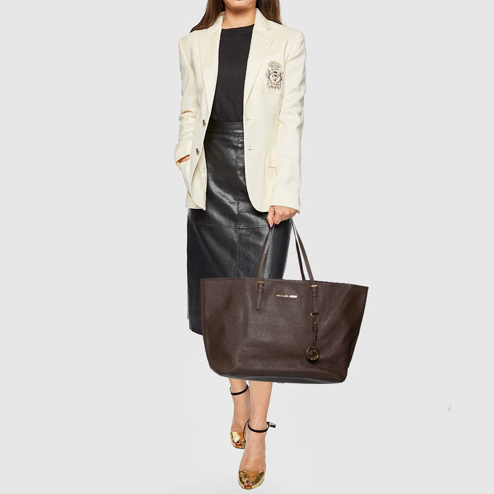 This Michael Kors tote bag is a beautiful creation. From its design to its structure, the leather Jet Set bag exudes charm and classic fashion. It flaunts two handles for you to hold on your shoulder and a spacious interior to hold all your essentials