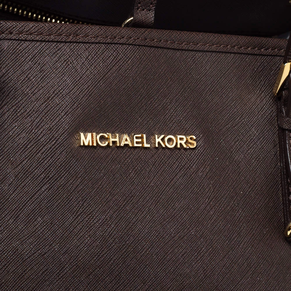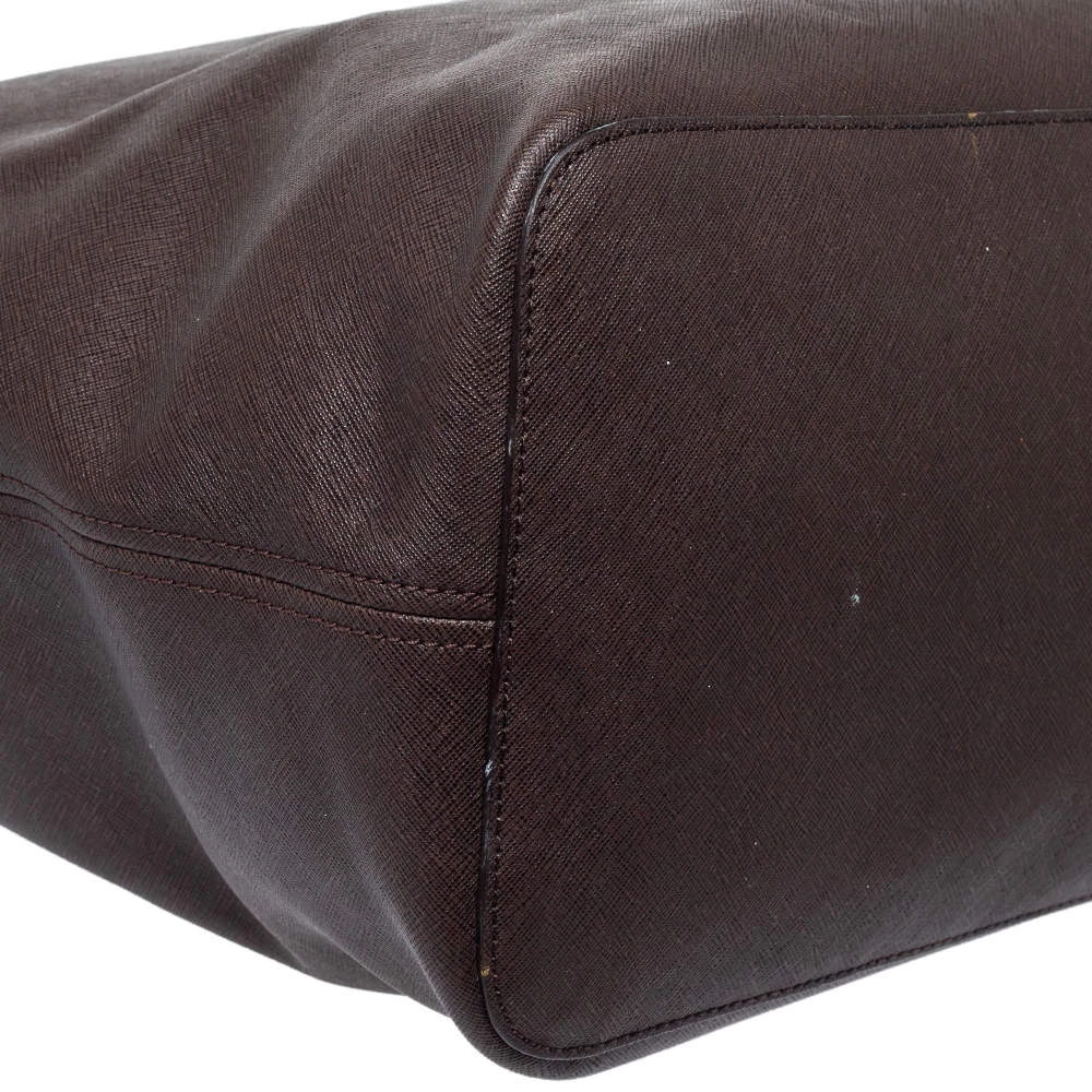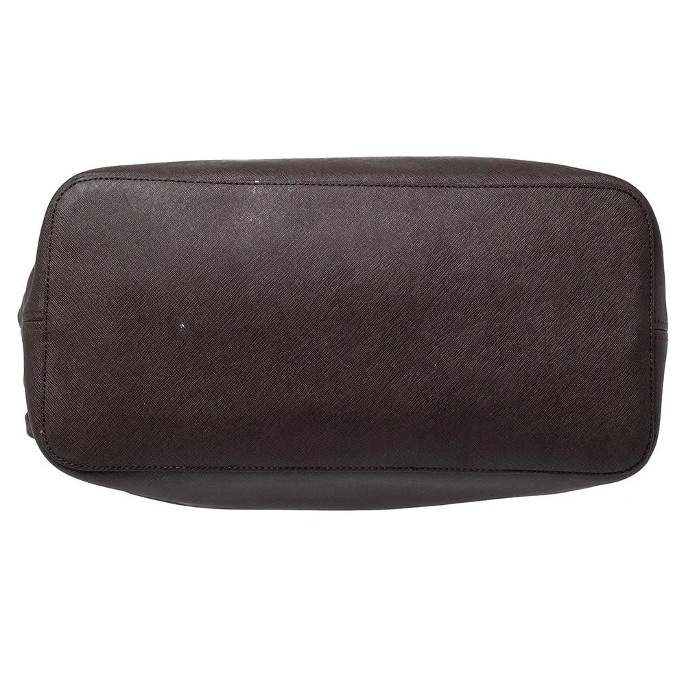 This Michael Kors tote is beautiful in so many ways. From its design to its structure, the dark brown leather bag exudes charm and high fashion. It flaunts two shoulder handles for you to swing and a spacious interior to hold all your essentials. It is finished with gold-tone hardware.