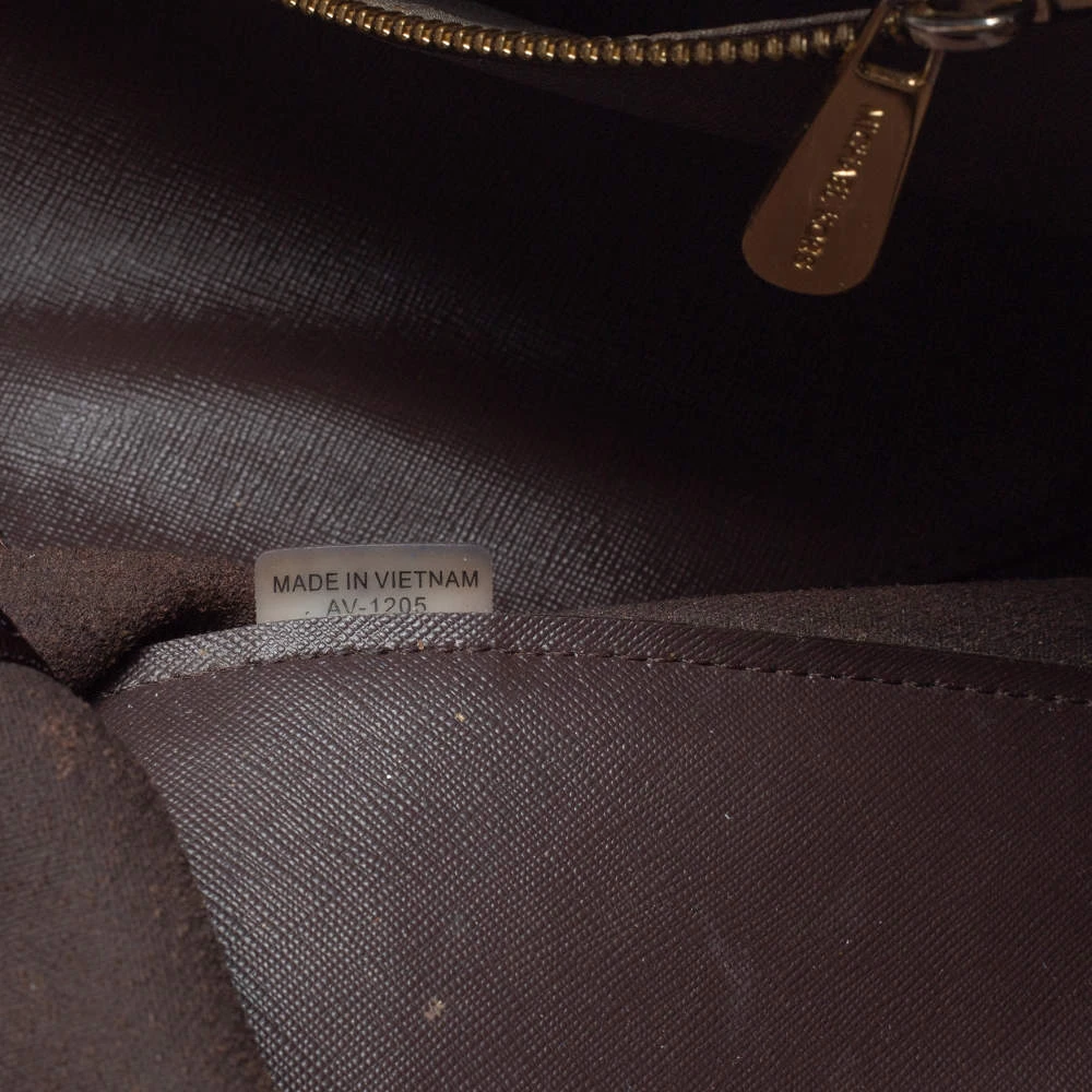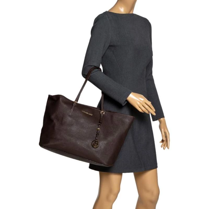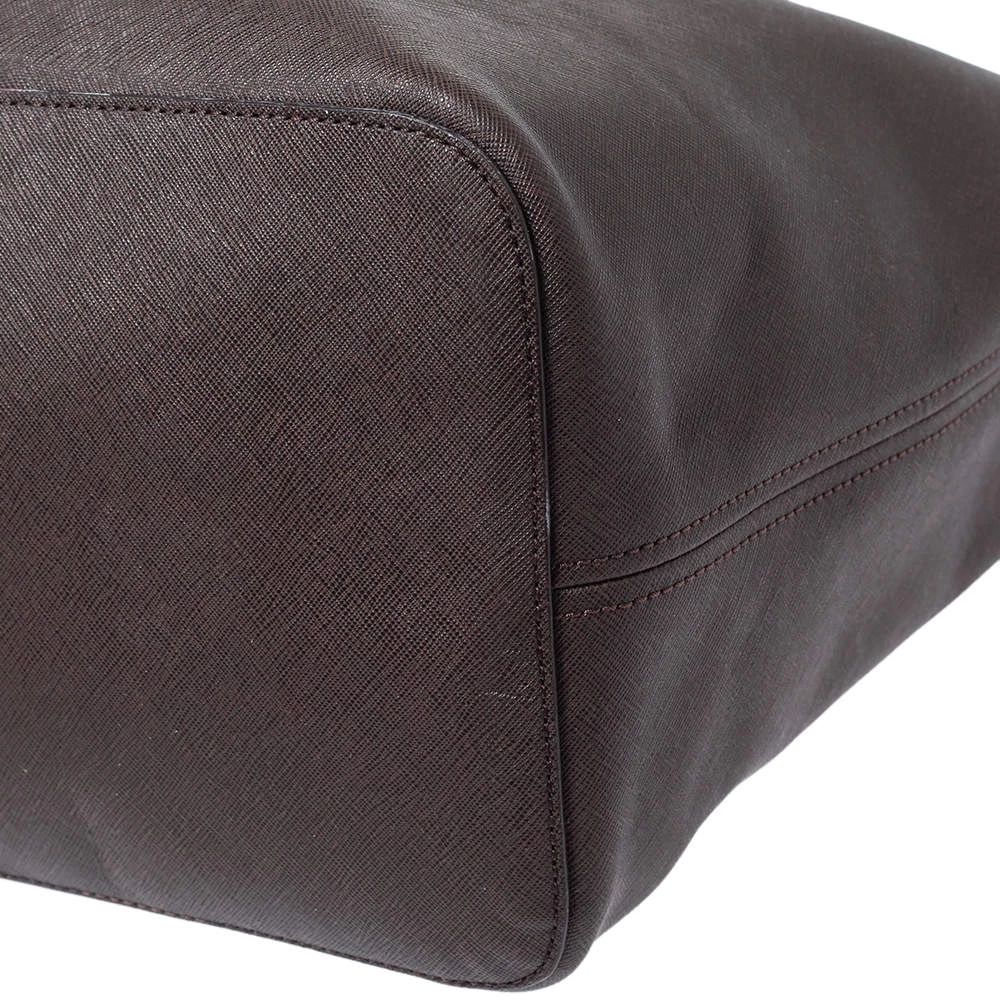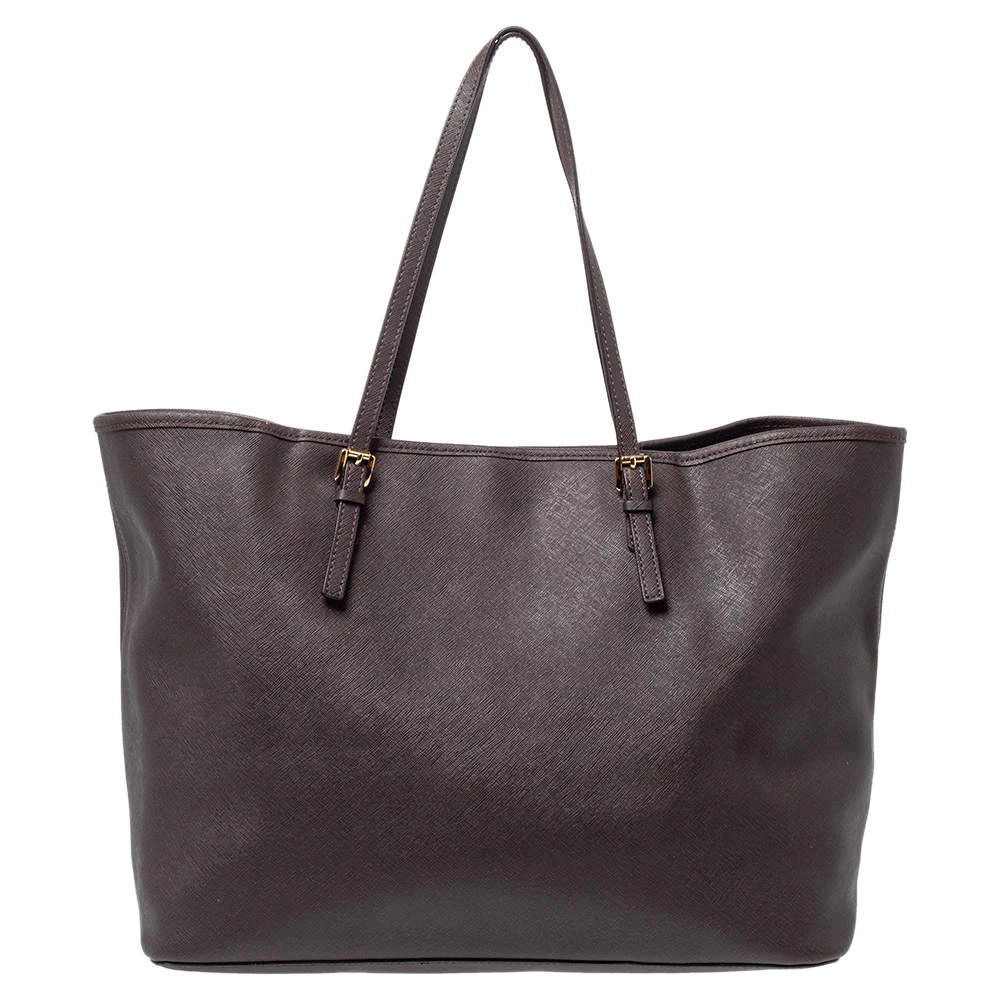 This Michael Kors tote is beautiful in so many ways. From its design to its structure, the dark brown leather bag exudes charm and high fashion. It flaunts two shoulder handles for you to swing and a spacious interior to hold all your essentials. It is finished with gold-tone hardware.