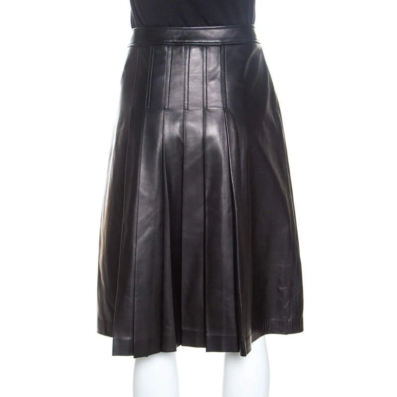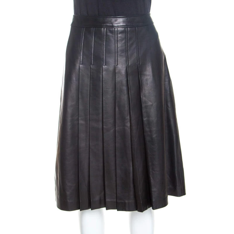 Flaunt this classy and contemporary Michael Kors skirt which is just what you need to be at the top of your fashion game. Make a lasting impression at once with this bold and stylish black midi skirt. It is tailored from brown leather and features a pleated design all over.
