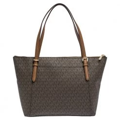 Look in style while carrying this beautiful Michael Kors Ciara tote. This pretty bag is made from brown signature coated canvas and equipped with two handles and a spacious nylon interior where you can stow your essentials.
