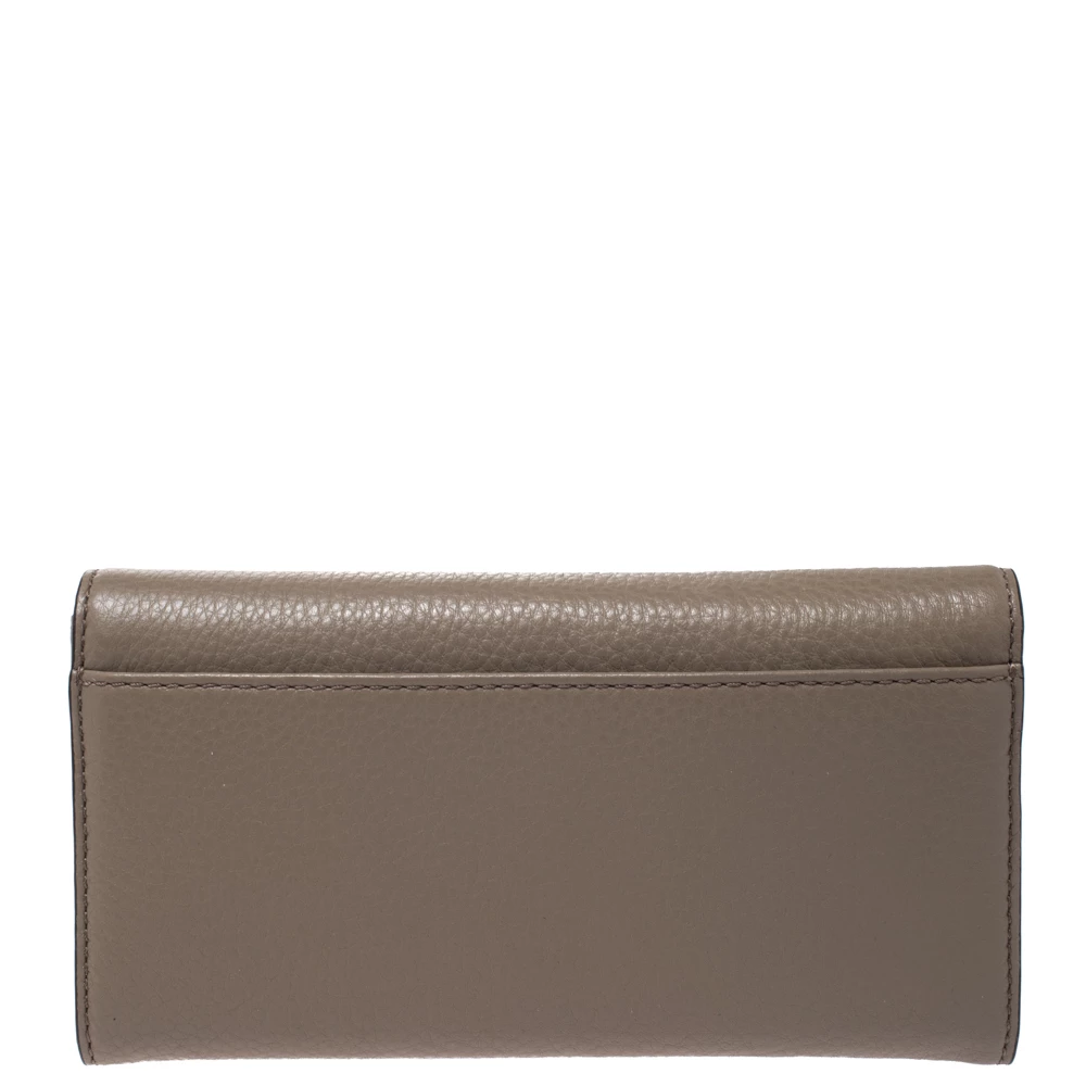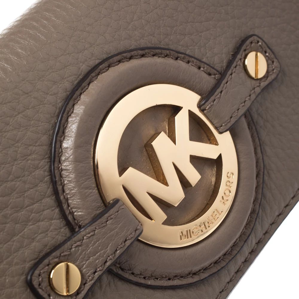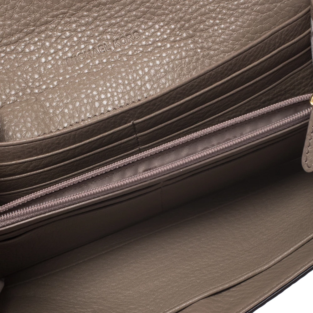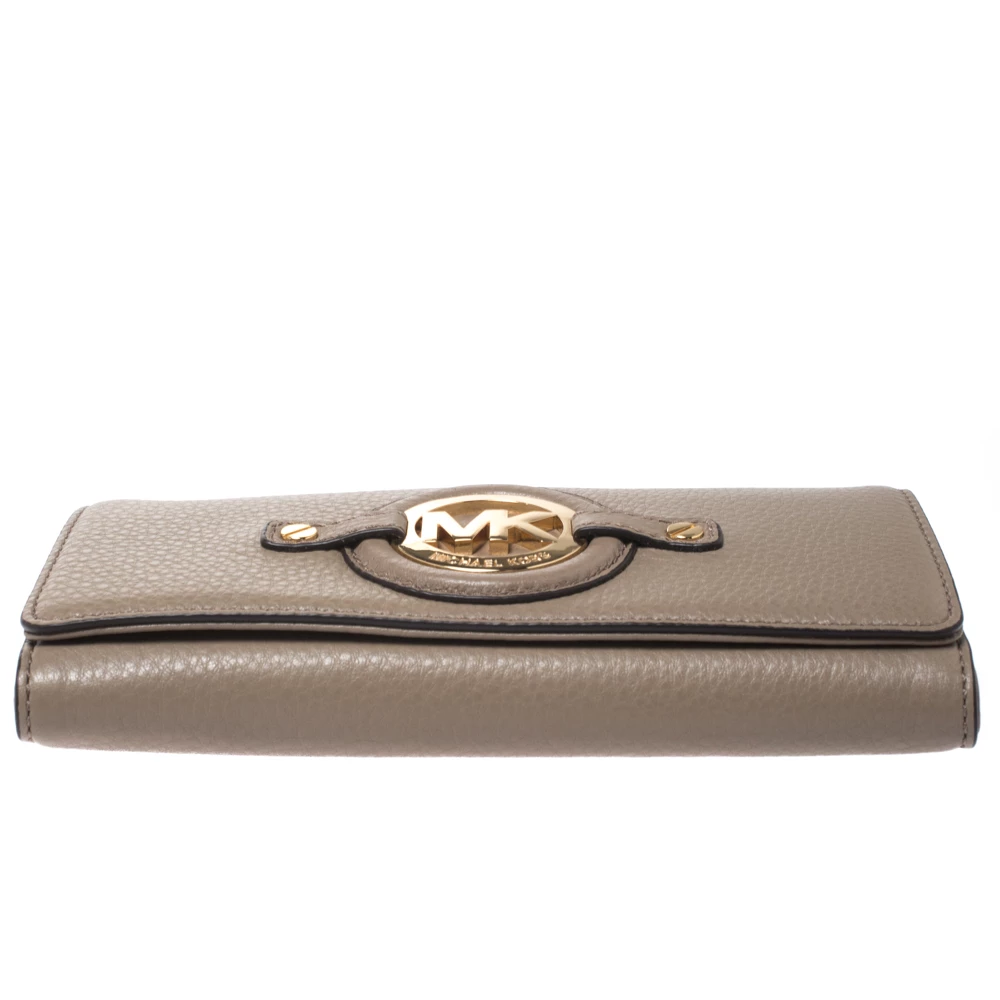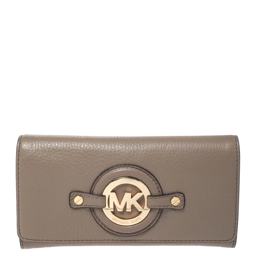 THis Stockard wallet comes from the house of Michael Kors. It is crafted from dark dune leather and carries the MK logo in gold-tone in the front. The front flap opens to reveal a leather & fabric interior with a zip pocket, multiple slots and compartments for all essentials.