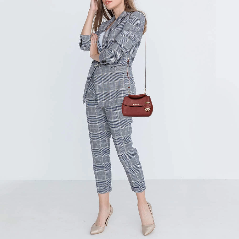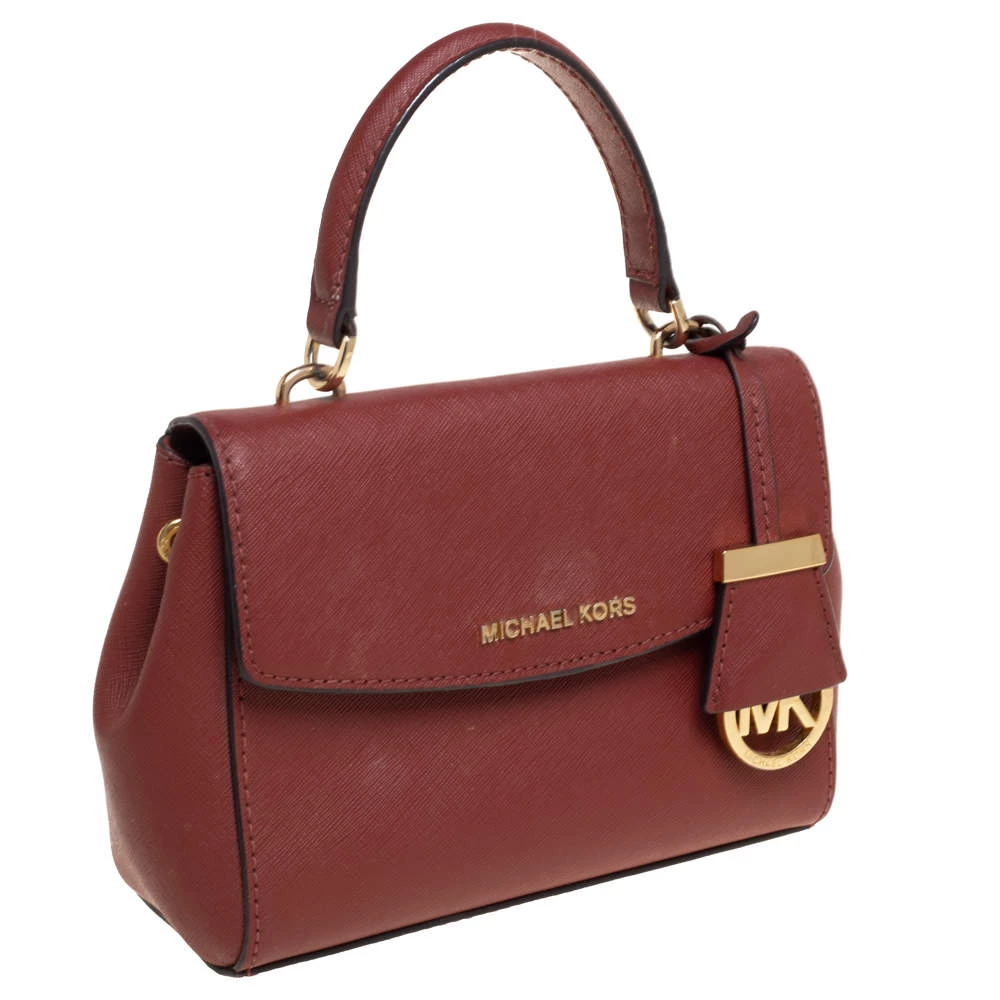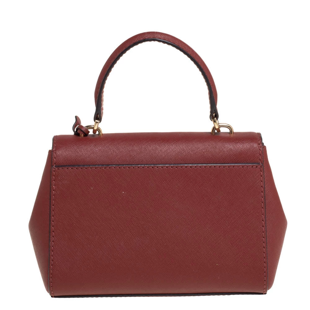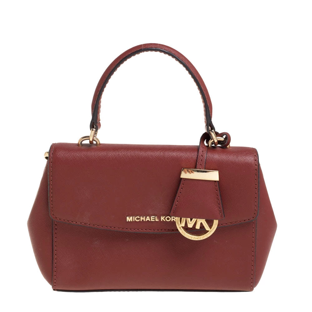 This dark red-colored bag comes from the fashion house of Michael Kors. Crafted from leather, it features a durable nylon interior that ensures to house your lipstick, wallet, and other essentials. Designed with a flap closure, it flaunts gold-tone brand logo at the front.