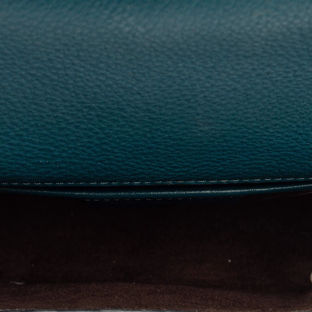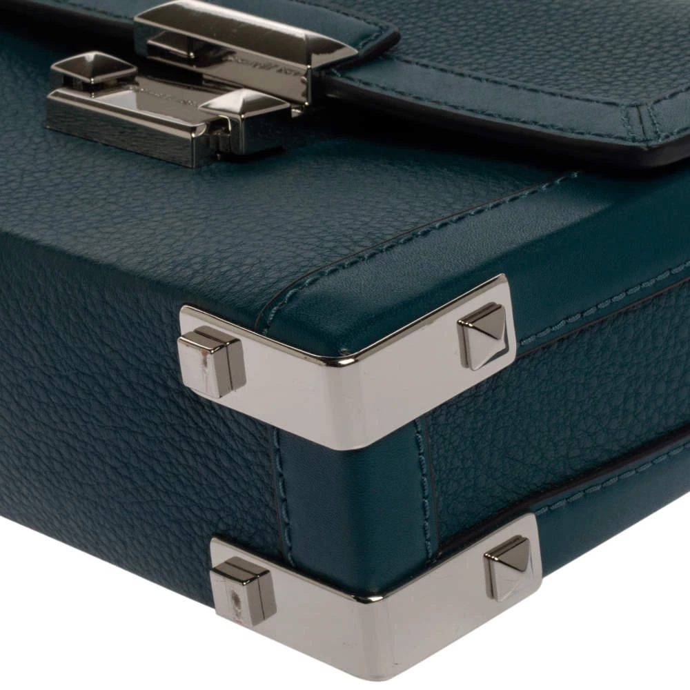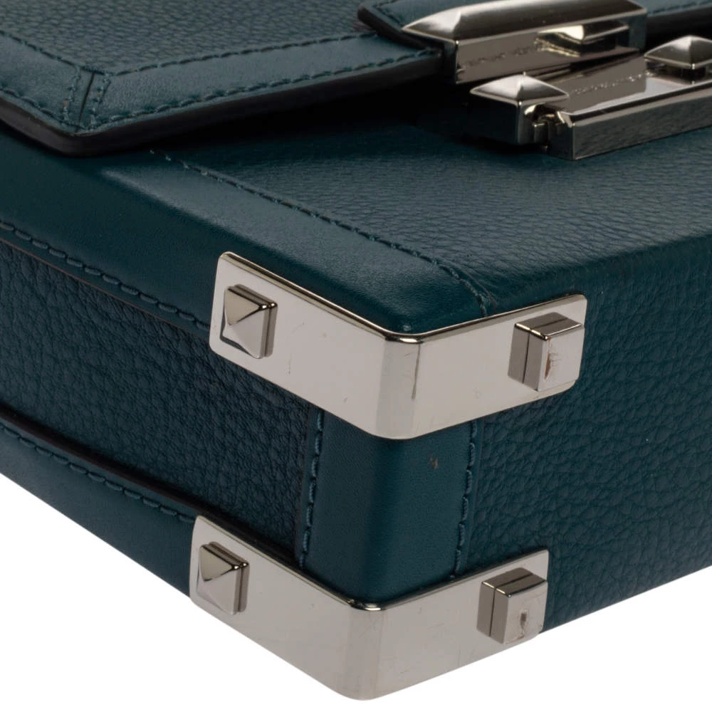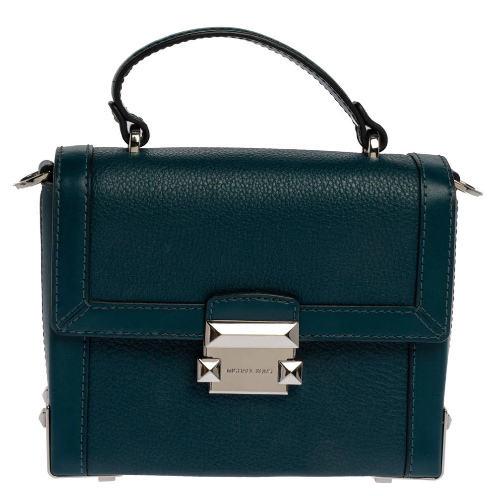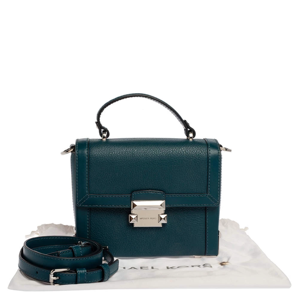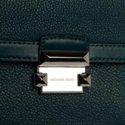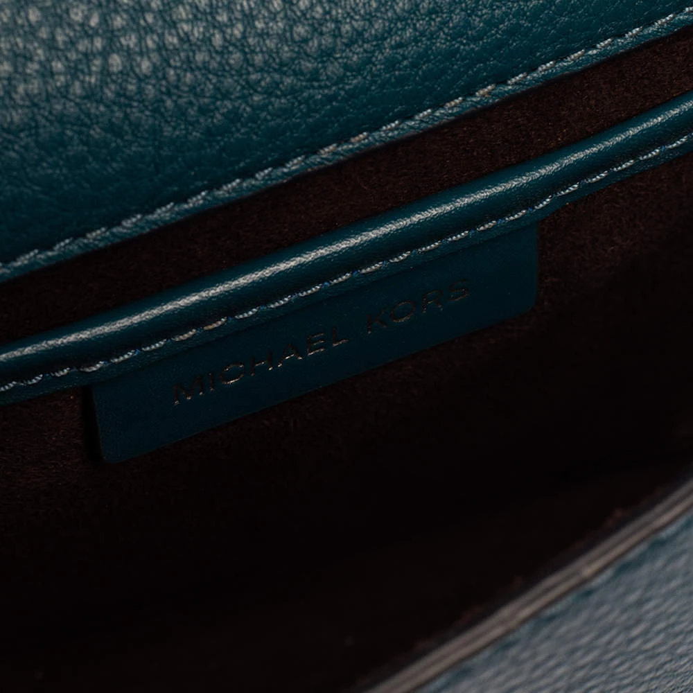 This lovely bag is from the house of Michael Kors. Meticulously crafted using leather, it comes in a shade of dark teal. It has a flap closure, a top handle, and a suede-lined interior. The creation is finished with silver-tone hardware.