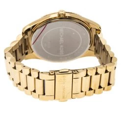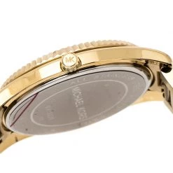 Awaiting to be yours is this stunner of a watch from Michael Kors! Crafted with beauty using gold-plated stainless steel, the Quartz watch is elevated by a textured bezel. It brings a gorgeous emerald green dial set with baton hour markers and gold-tone hands. Finished perfectly with a water resistance of 50 meters, this watch is surely going to look great on your wrist.