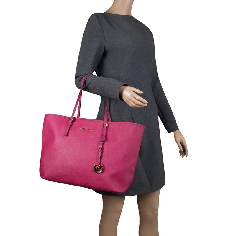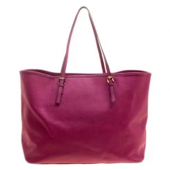 This Michael Kors tote is beautiful in so many ways. From its design to its structure, the fuschia leather bag exudes charm and high fashion. It flaunts two shoulder handles for you to swing and a spacious suede interior to hold all your essentials.
