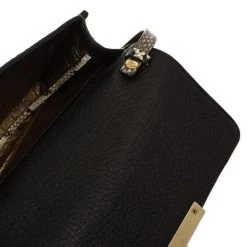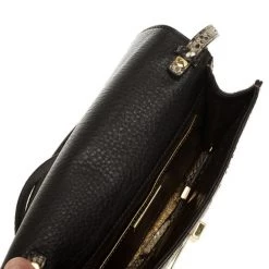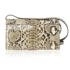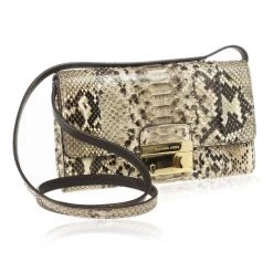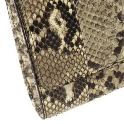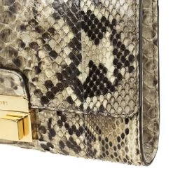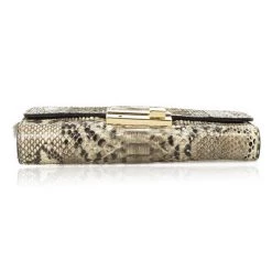 Glam up your evening wear with this gia clutch by Michael Kors. It is made from desert python leather and equipped with a push lock. It features a flap front, a detachable strap and gold tone hardware. The leather lined interior has one open pocket.