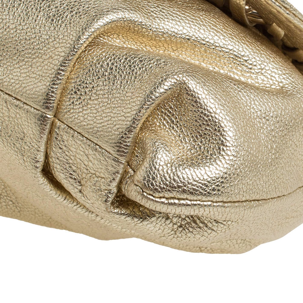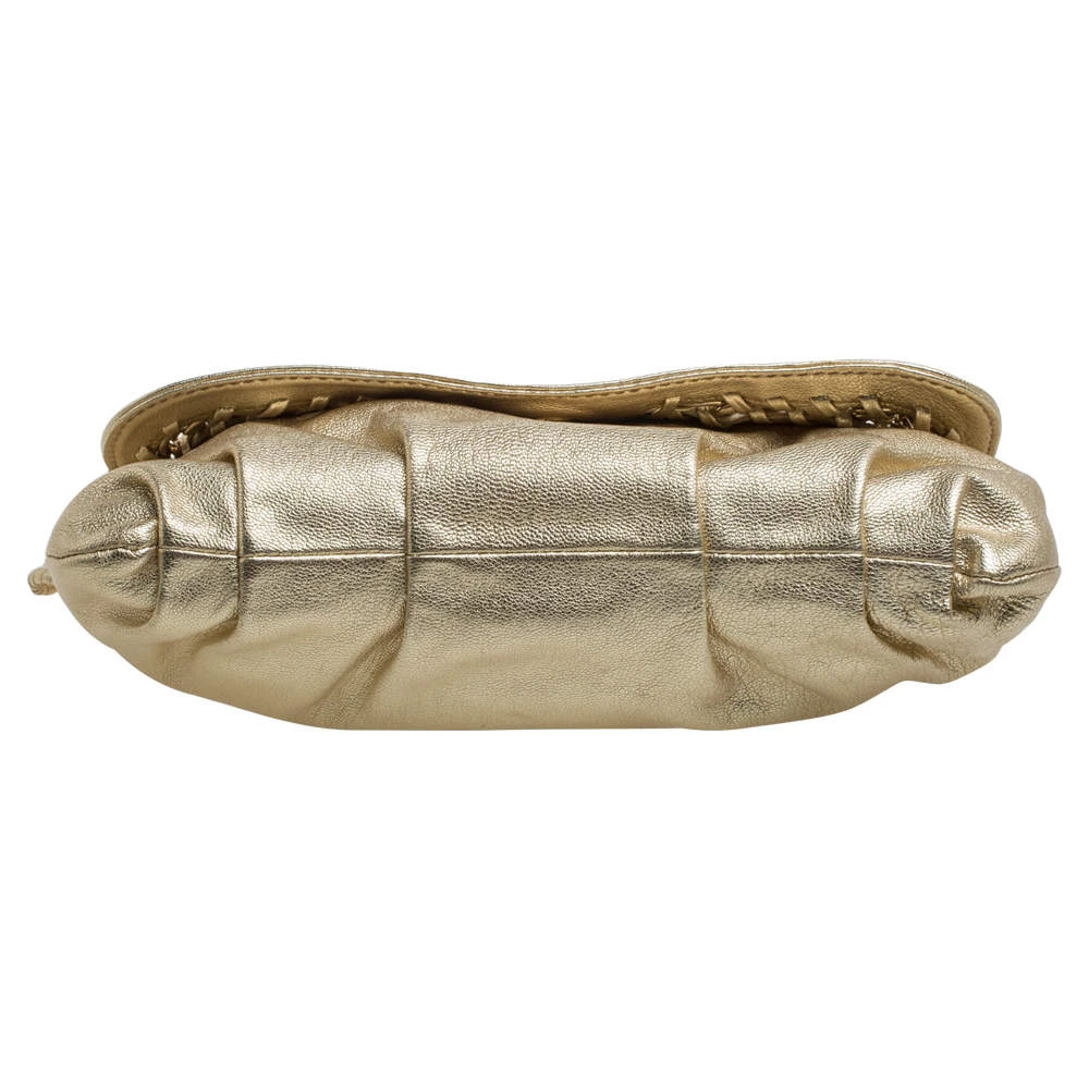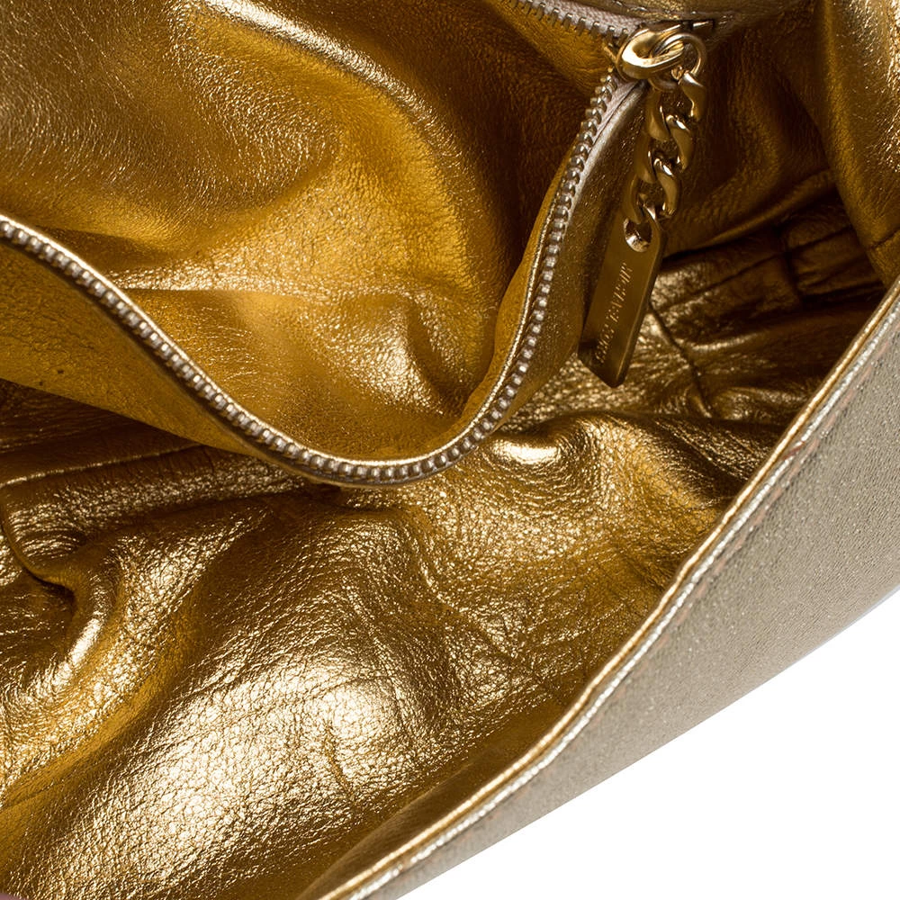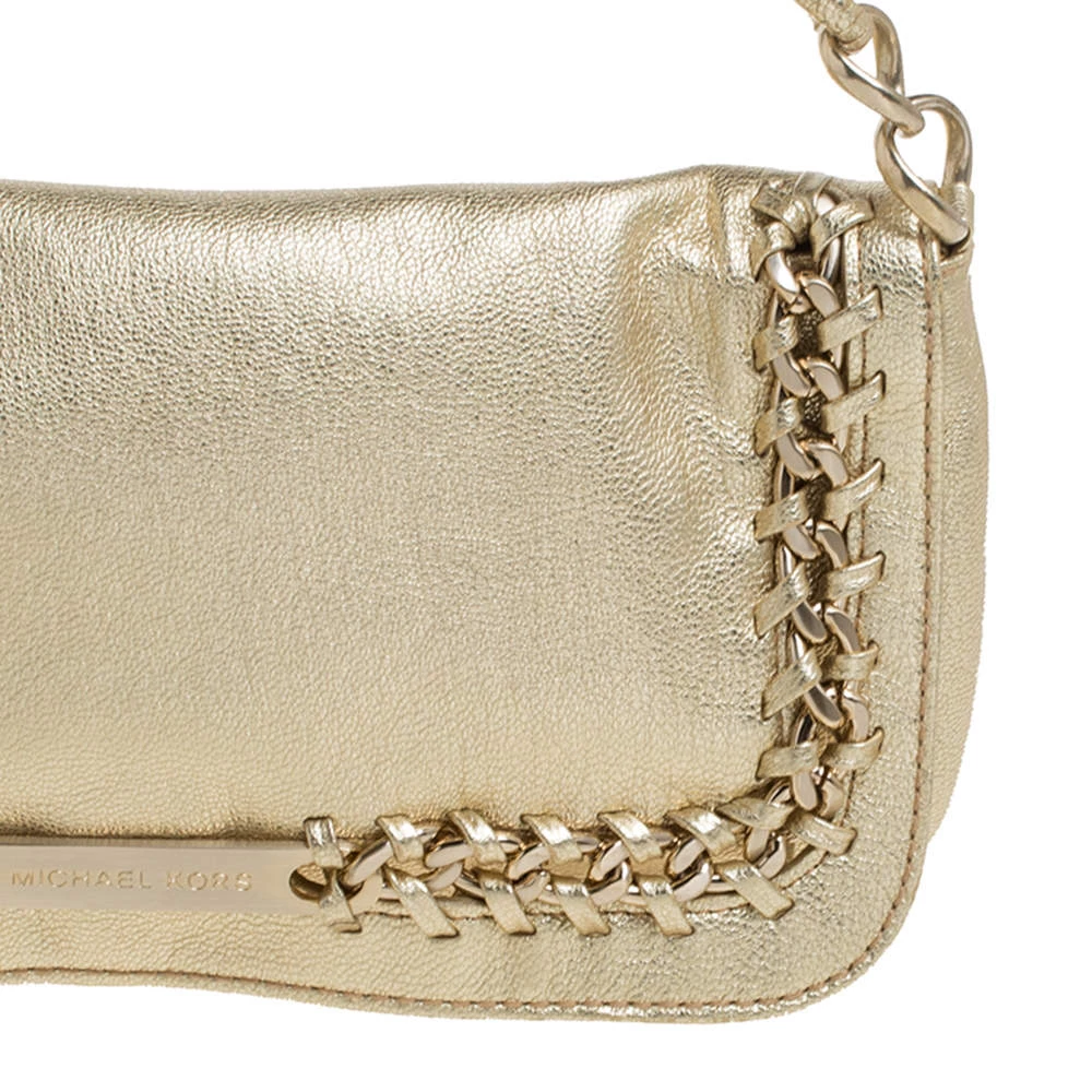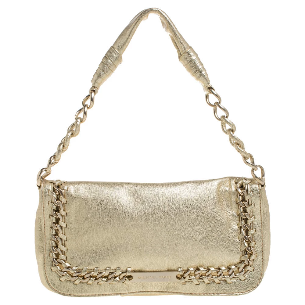 This luxe flap bag from Michael Kors is crafted in gold leather. It features distinct chain detailing on the front flap, a single chain handle and a well-sized leather interior.