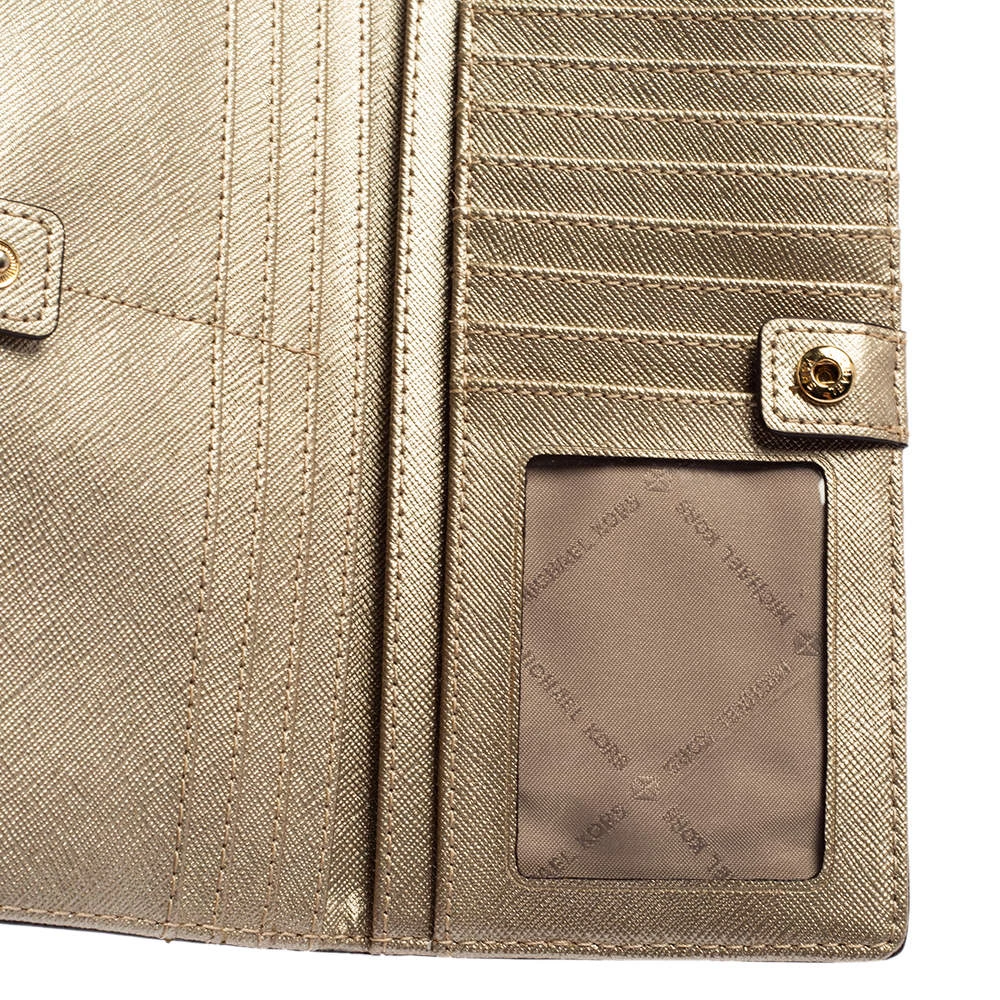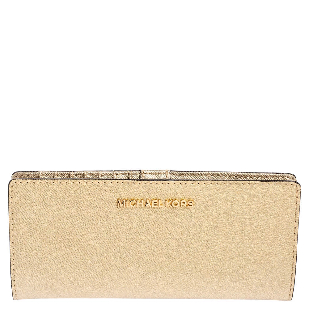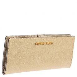 Every woman deserves to have a beautiful wallet in her collection. Crafted from leather this Michael Kors wallet opens to a leather and nylon-lined interior housing open compartments for currency and bills, one zipped coin pocket, and multiple card slots.