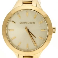 Michael Kors bring forth an elegantly wonderous design with this gold plated timepiece that can add sophisticated charm to your collection of wristwatches. The stainless steel casing of the runway women’s watch makes it effortlessly durable while adding a hint of delightful glamour to your ensemble.