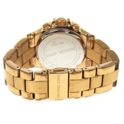 This fabulous watch by Michael Kors is a stunning timepiece you will love to flaunt. Crafted from gold plated stainless steel, this watch features three sub dials and a date window. It fixes on the wrist with a gold plated stainless steel bracelet.