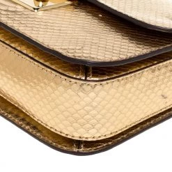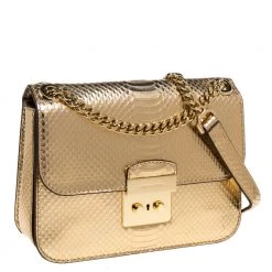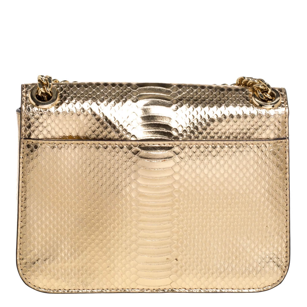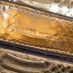 Elevate your style with this gorgeous Sloan shoulder bag by Michael Kors. Crafted from gold python-effect leather, the bag features gold-tone hardware. It has a flap closure and a nylon-lined interior. This beauty is complete with a chain link.