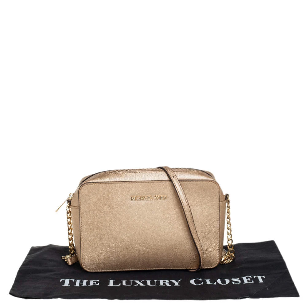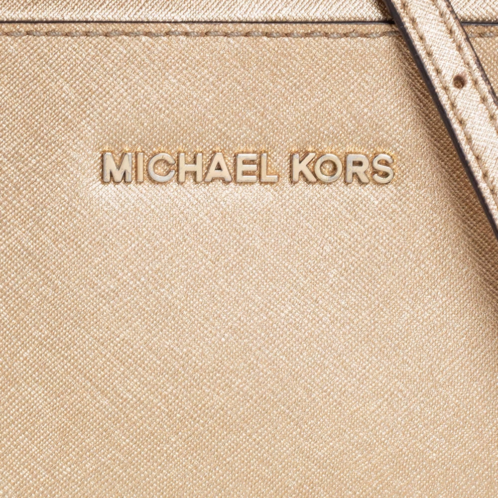 This Michael Kors tote is beautiful in so many ways. From its design to its structure, the gold leather bag exudes charm and high fashion. It flaunts a shoulder strap for you to swing and a spacious nylon interior to hold all your essentials.