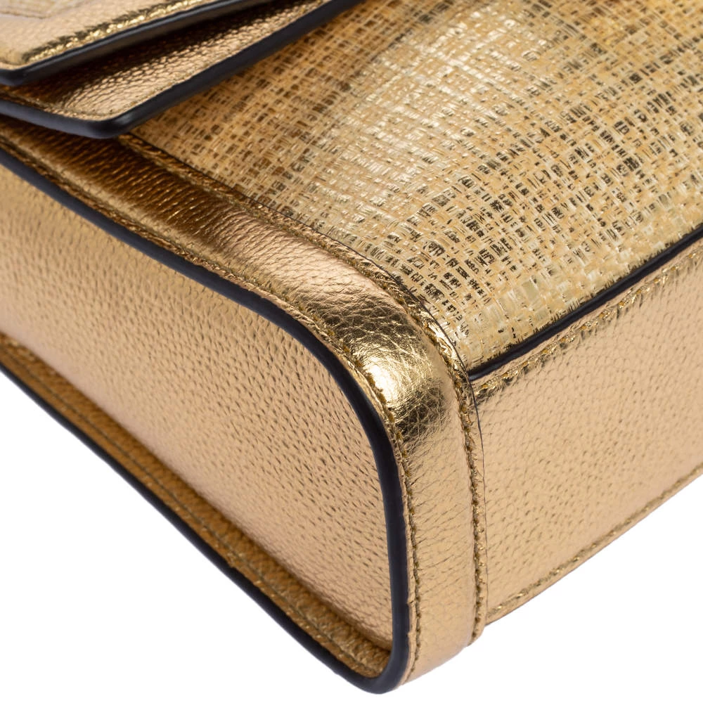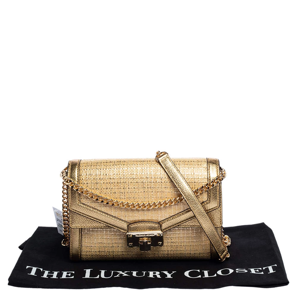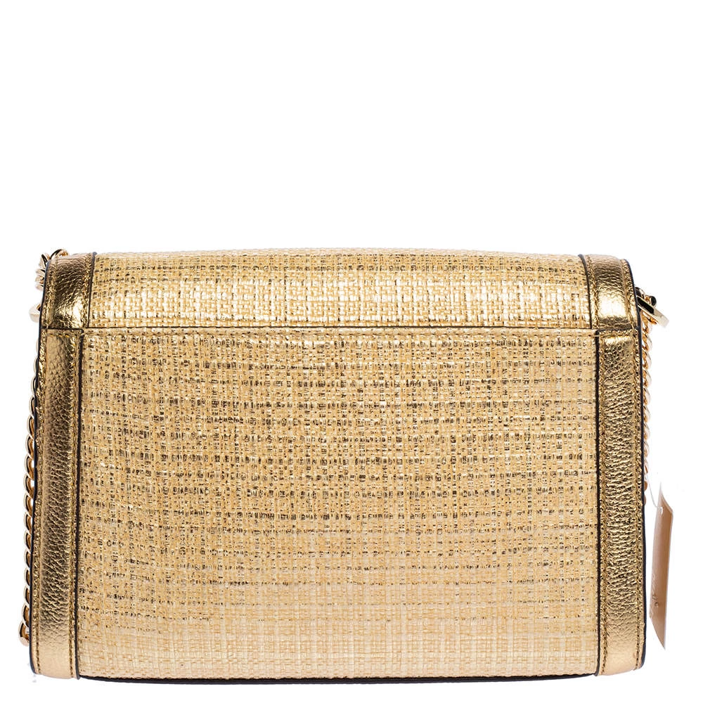 Masterfully crafted with straw and leather, the Kinsley bag is a must-have piece for any fashionista. This handbag by Michael Kors has a spacious interior lined with the finest fabric. Designed in a stunning shade of gold, this piece is complete with gold-tone hardware and a long shoulder strap.
