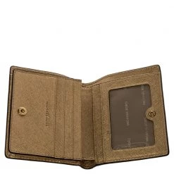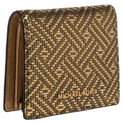 This stylish and functional cardholder by Michael Kors is a must-have. Crafted from well-designed textured leather, it has a gold-tone brand logo on the front flap. It comes in a lovely gold shade and a leather-nylon interior. It is equipped with multiple slots to hold your cards.