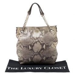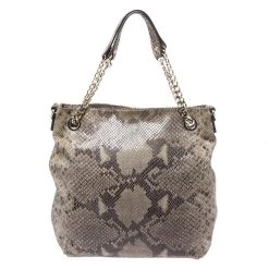 This stunning bag by Michal Kors has been crafted from python-embossed suede and comes in lovely hues of green and black. It features dual chain and suede handles, a nylon-lined interior, a zip pocket and enough space to hold your essentials. It is a great choice for everyday wear.