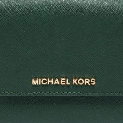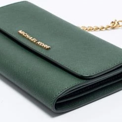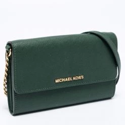 This crossbody bag from Michael Kors exudes the right amount of class and style. Crafted from green leather, this bag is adorned with a strap and gold-tone hardware. It accommodates a fabric-lined interior. Make this bag yours today and experience never-ending luxury.