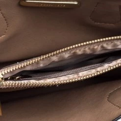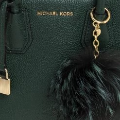 Featuring a chic and fabulous style, this Michael Kors tote is modern. Crafted from leather in stunning green, the tote features dual handles, a removable shoulder strap, and a fur charm. It opens to a spacious leather interior divided by a zipped compartment. The tote comes with protective metal feet and you are sure to love swinging this beauty.