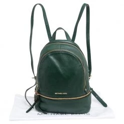 Get set to look uber stylish with this green backpack from Michael Kors. It has been crafted from leather and it flaunts zippers at the top that reveals a fabric-lined interior, a zip pocket at the front, and shoulder straps. This piece is very much in vogue, so get your hands on this today!