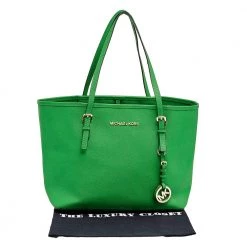 This Michael Kors tote is beautiful in so many ways. From its design to its structure, the green leather bag exudes charm and high fashion. It flaunts two shoulder handles for you to swing and a spacious interior to hold all your essentials.