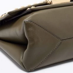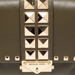 This Michael Kors shoulder bag represents the label’s contemporary and classy attributes. It is made from leather in a classy green shade with gold-tone studs on the exterior. The bag is complete with a shoulder chain.