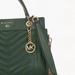 Featuring two handles and a green quilted exterior, this Michael Kors satchel exudes just the right amount of sophistication. Crafted from leather, the bag features a spacious compartment to house all your essentials. This piece is definitely an ideal buy.