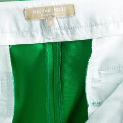 These stylish tailored trousers by Michael Kors have been crafted out of wool and look bright and gorgeous in green. These feature a zipper and button fastening at the front and have belt loops at the waist. Pair these up with stylish formal shirt or top for a fashionable look at work!