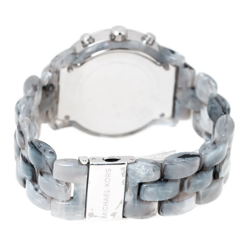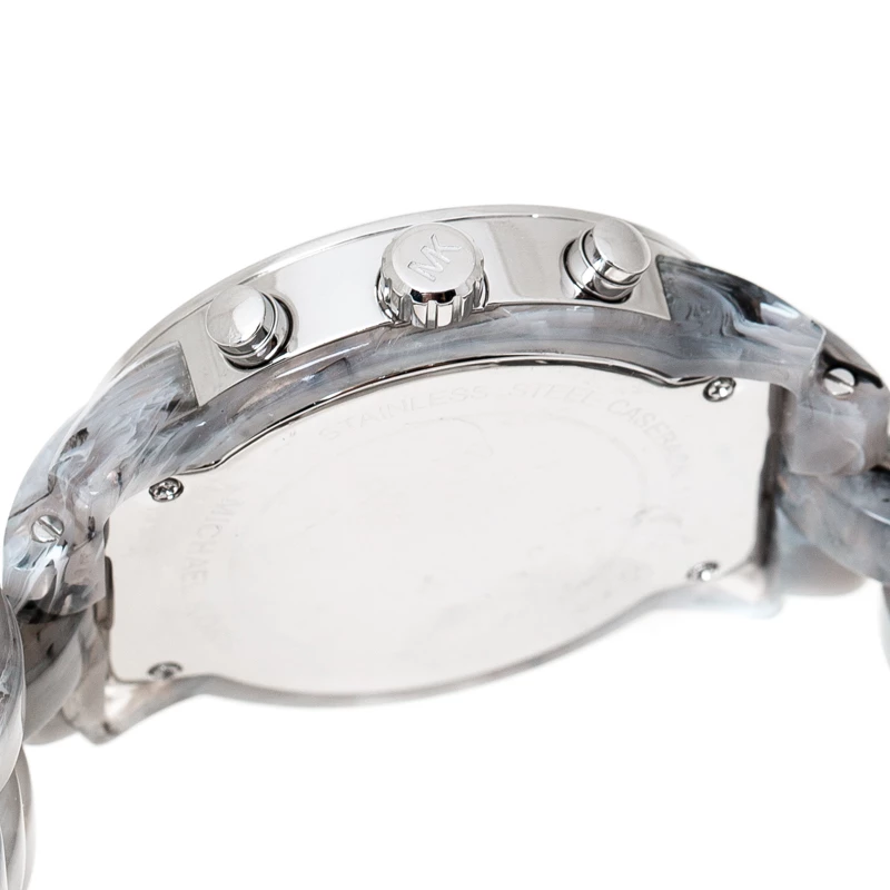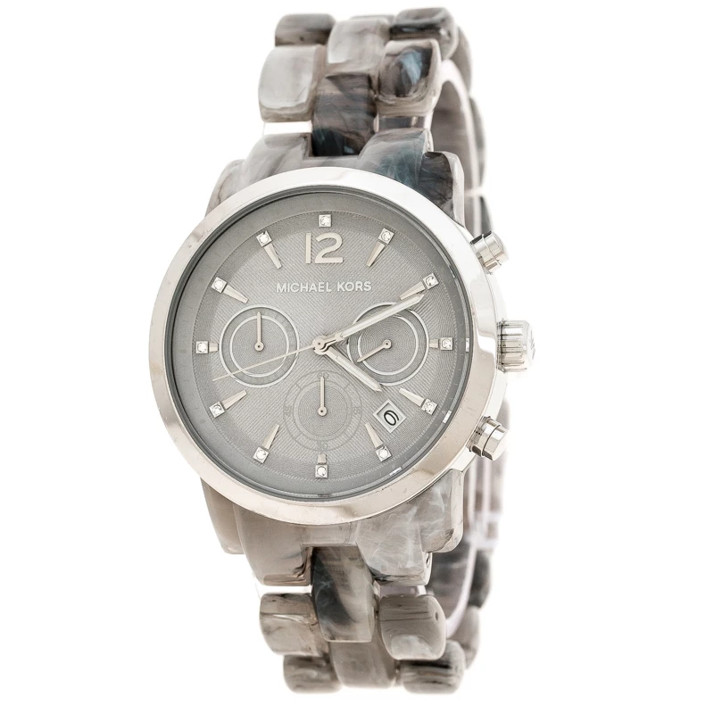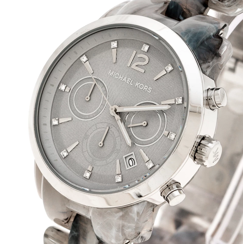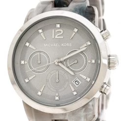 A timepiece for everyday wear, this beauty by Michael Kors is made to tell the time in the most efficient way. The watch is made of acetate and stainless steel. The grey dial is set with silver-tone markers, a date window and three subdials. The watch is armed with water-resistance of 100 meters.