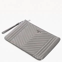 This stylish and functional pouch by Michael Kors will elevate your ensembles instantly. It has a grey hue, a quilted leather exterior, zip closure, gunmetal-tone hardware, and enough space for little essentials.