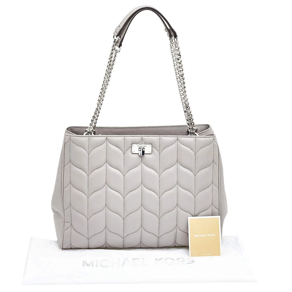 A creation that is both highly functional and appealing is this tote by Michael Kors. Crafted from quilted leather, this large tote for women is held by dual handles and is finished with a spacious interior to hold your essentials with ease.