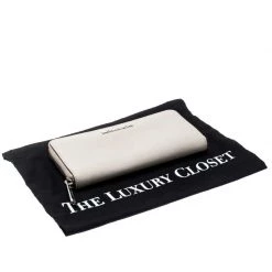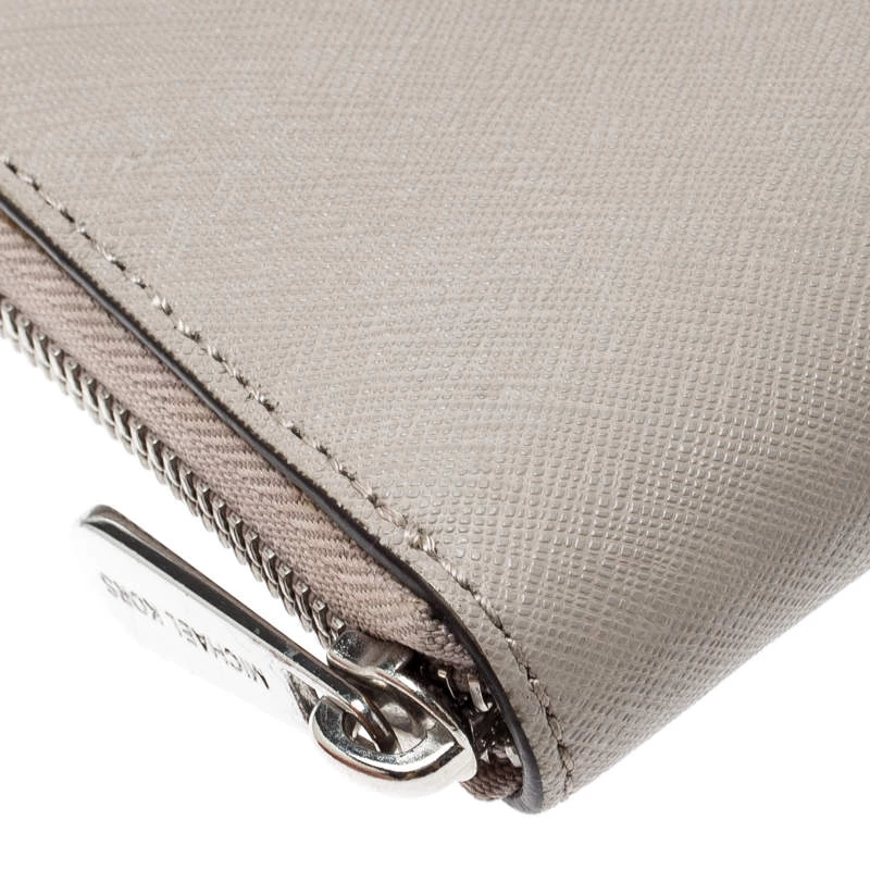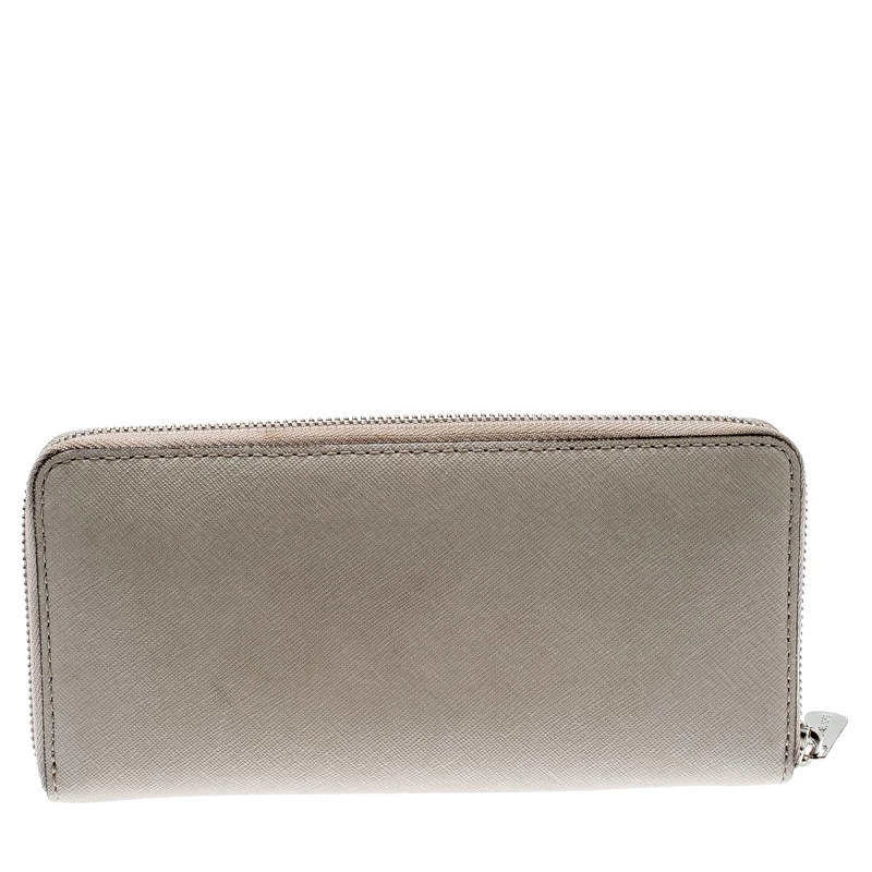 Every woman deserves to have an elegant wallet in her collection. Crafted from Saffiano leather this Michael Kors wallet comes with a zip closure that opens to a fabric lined interior housing two open compartments for currency and bills, one zipped coin pocket and multiple card slots.