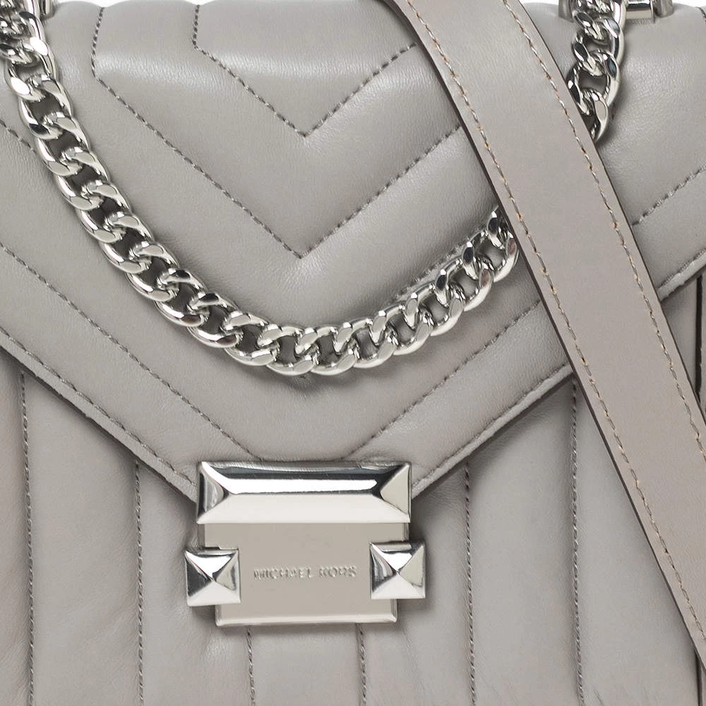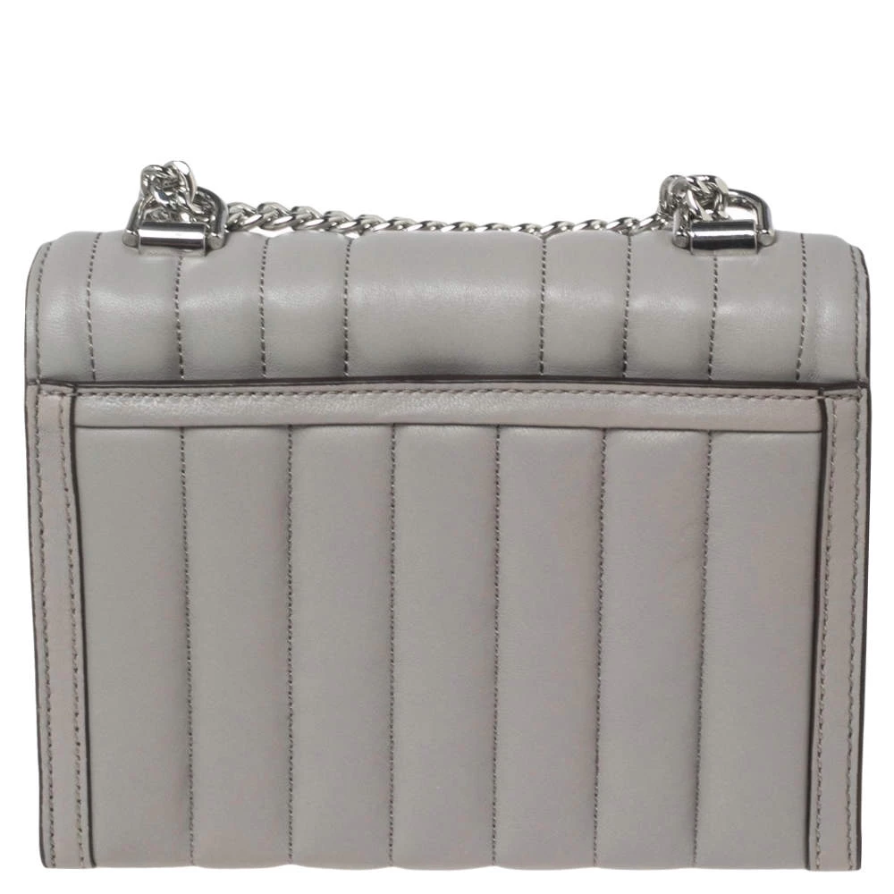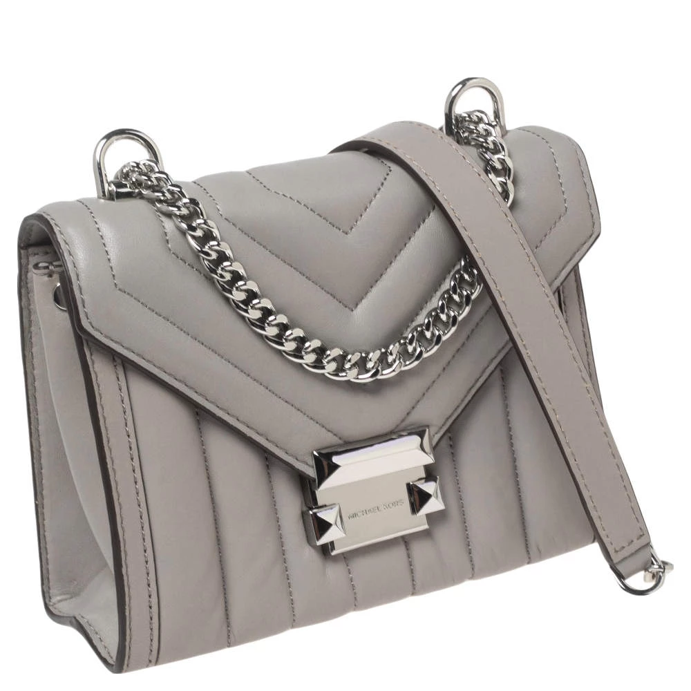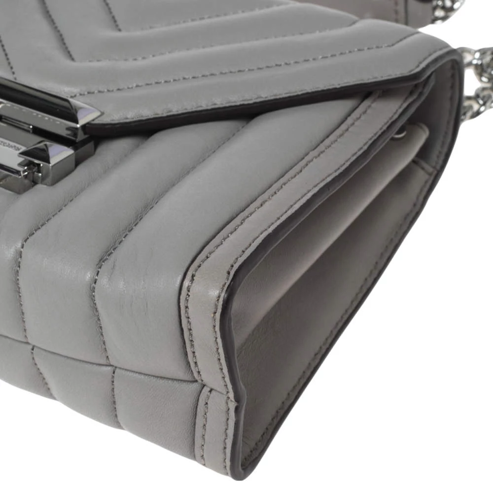 Michael Kors brings you this exquisitely designed shoulder bag that is a must-have for all the fashionistas. With a grey leather exterior and silver-tone hardware, it is striking in its structured silhouette. Pair it with an all-black outfit and some statement jewelry for a fashionable look.