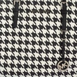 This Michael Kors tote is beautiful in so many ways. From its design to its structure, the houndstooth printed leather bag exudes charm and high fashion. It flaunts two shoulder handles for you to swing and a spacious interior to hold all your essentials.