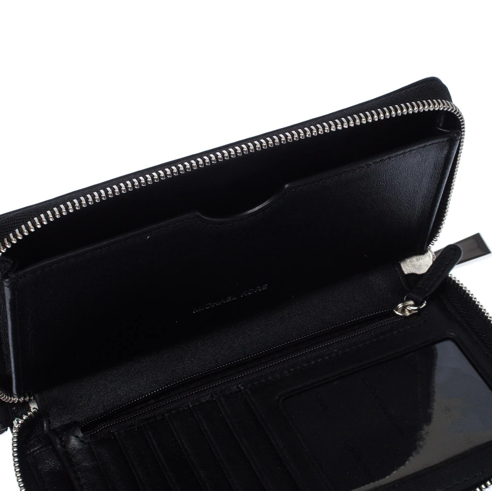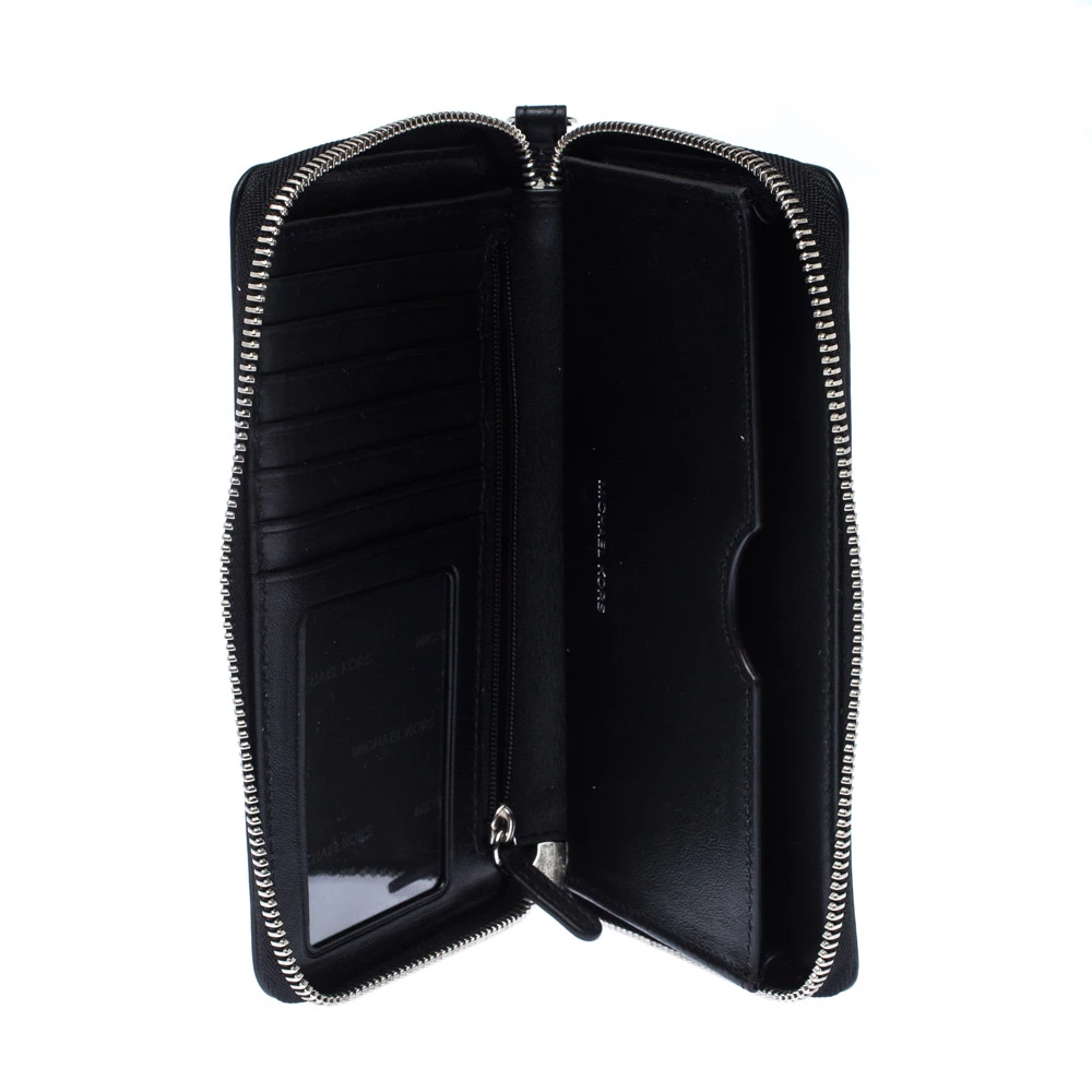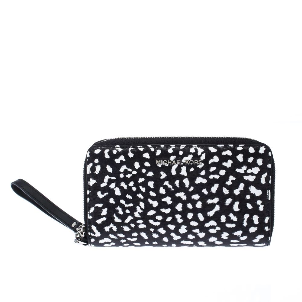 Meticulously crafted from leopard-printed leather, this Michael Kors creation for your smartphone exudes sophistication. The wallet-like case features a three-way zipper that leads to multiple slots and a compartment for your phone.