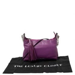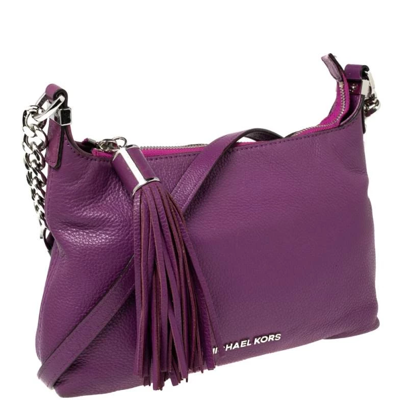 Fall in love instantly with this Michael Kors leather bag. The creation is elevated with a tassel motif, silver-tone hardware, and shoulder chain-leather strap. Lined with nylon, its spacious interior increases its utility value.