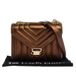 A luxe option for the season’s soirees, this metallic brown colored Whitney shoulder bag from Michael Kors is updated in quilted leather with a sheen finish. An adjustable chain strap provides the versatility to wear it as a crossbody, while the nylon-lined interior will effortlessly store your essentials.