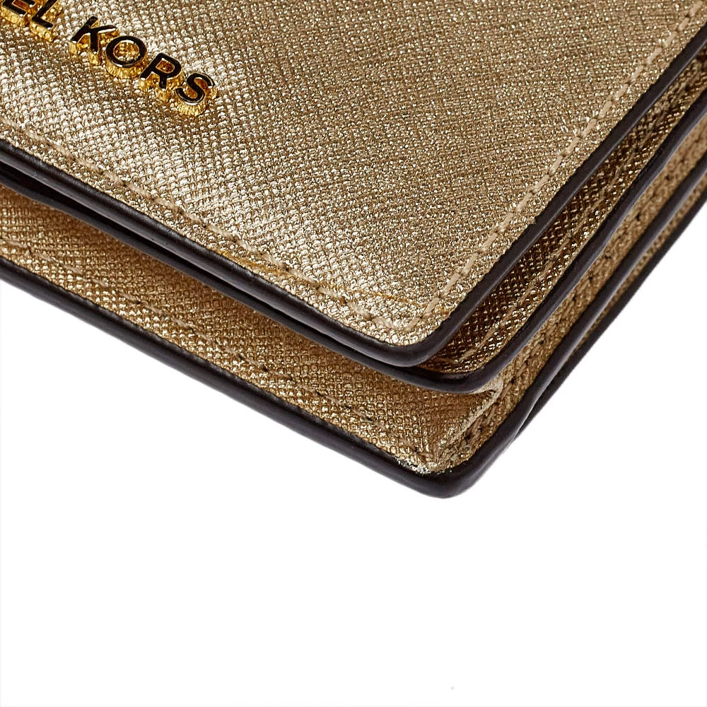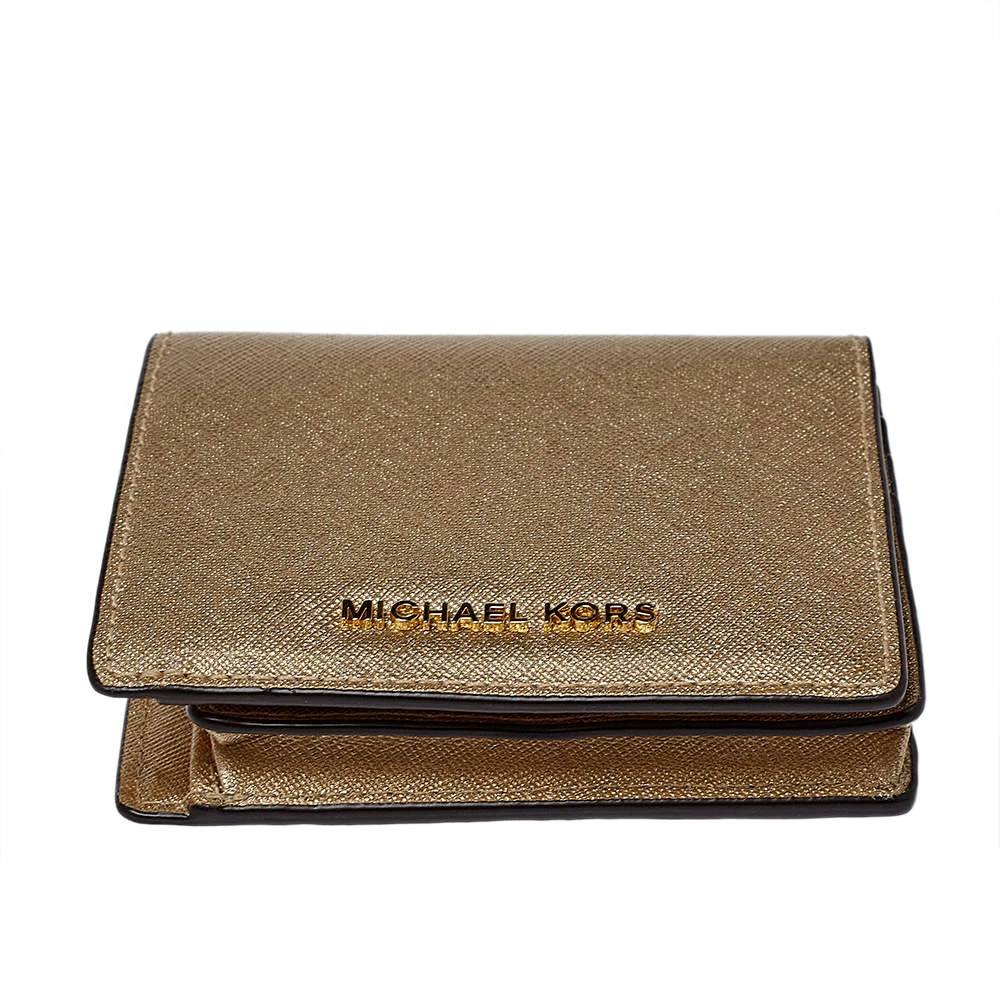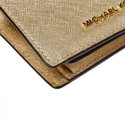 Wallets like this one from Michael Kors are a necessity since they’re not only functional but also stylish. Crafted from leather, this compact wallet is designed in a bifold style with card slots and a slip pocket. The front is decorated with a gold-tone brand label.