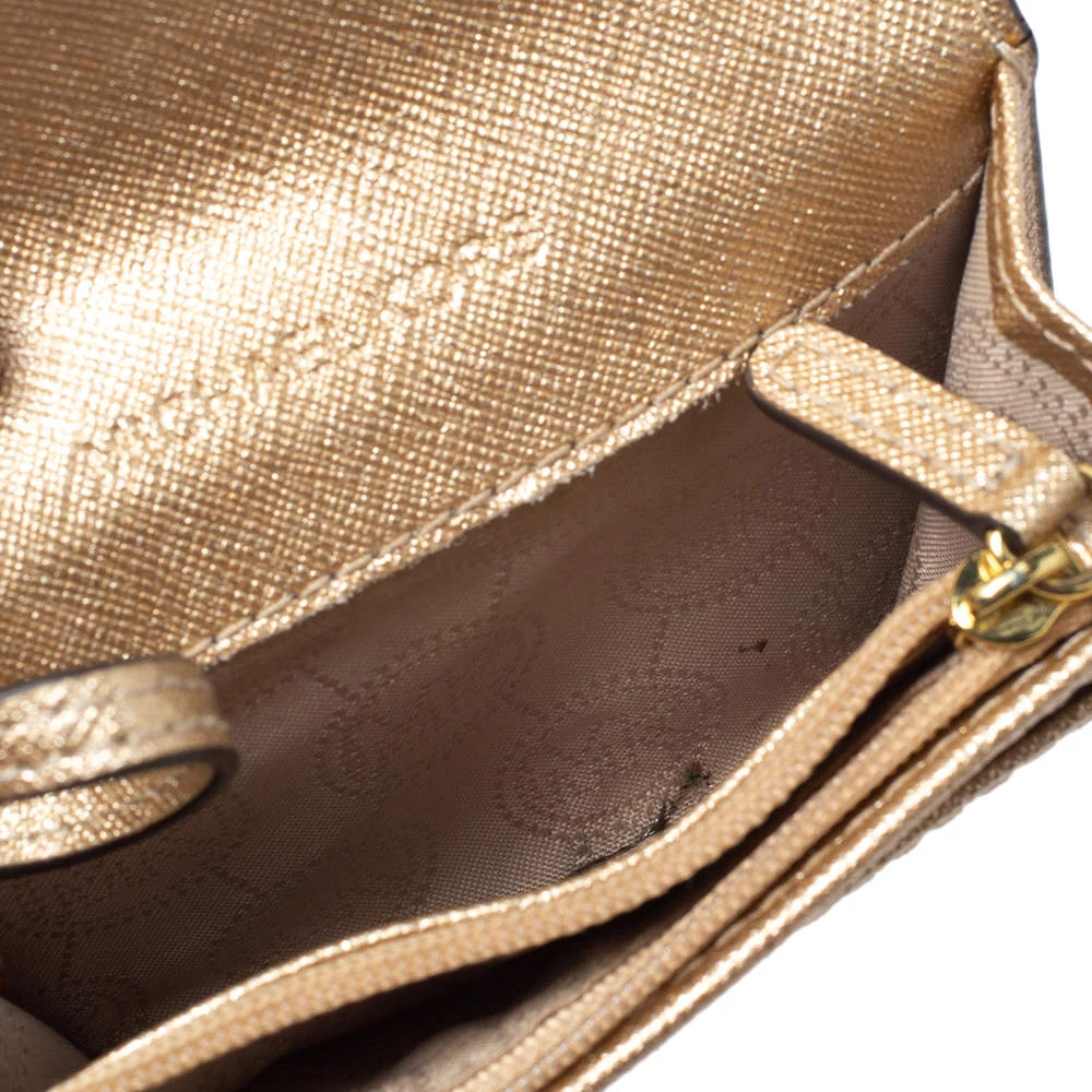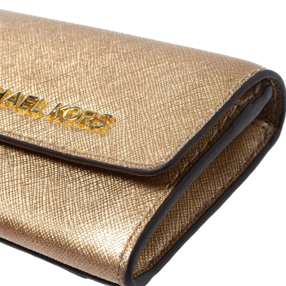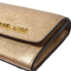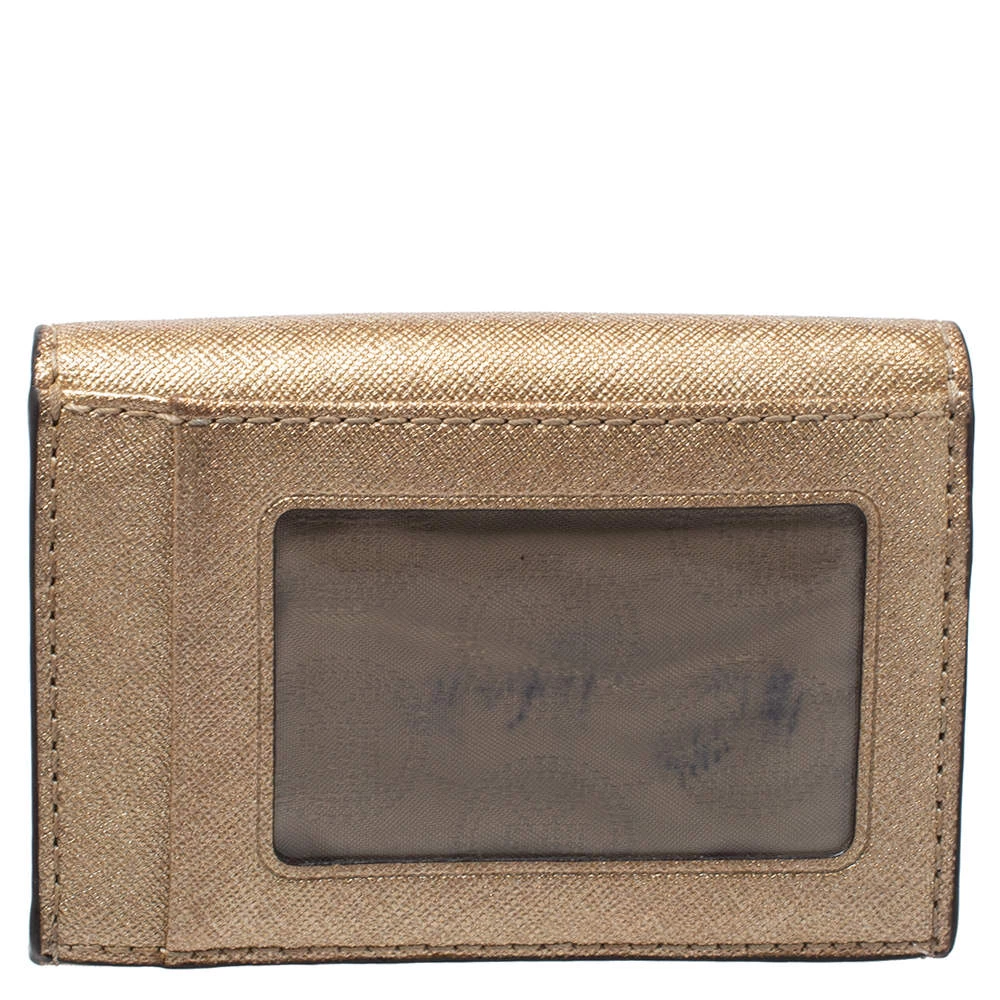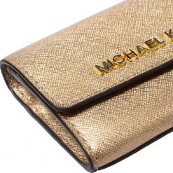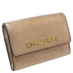 Accessorizing gets a new avatar with this gorgeous card-holder from Michael Kors. Made from premium quality leather, this creation is a long-lasting accessory. Effortlessly store your daily essentials with this flap style holder that comes in an attractive metallic gold hue.